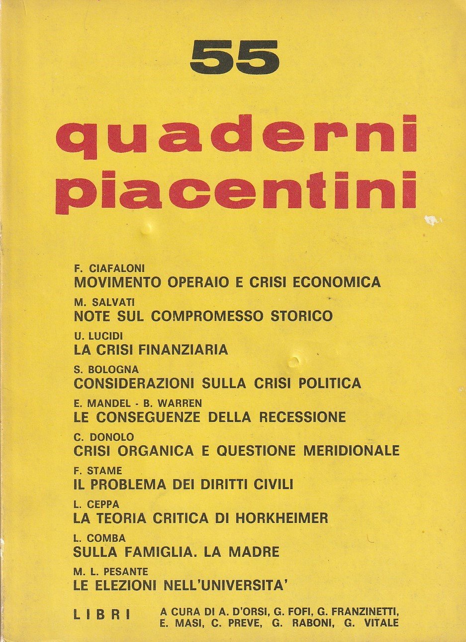 Quaderni Piacentini. Anno XIV. No. 55. Maggio 1975