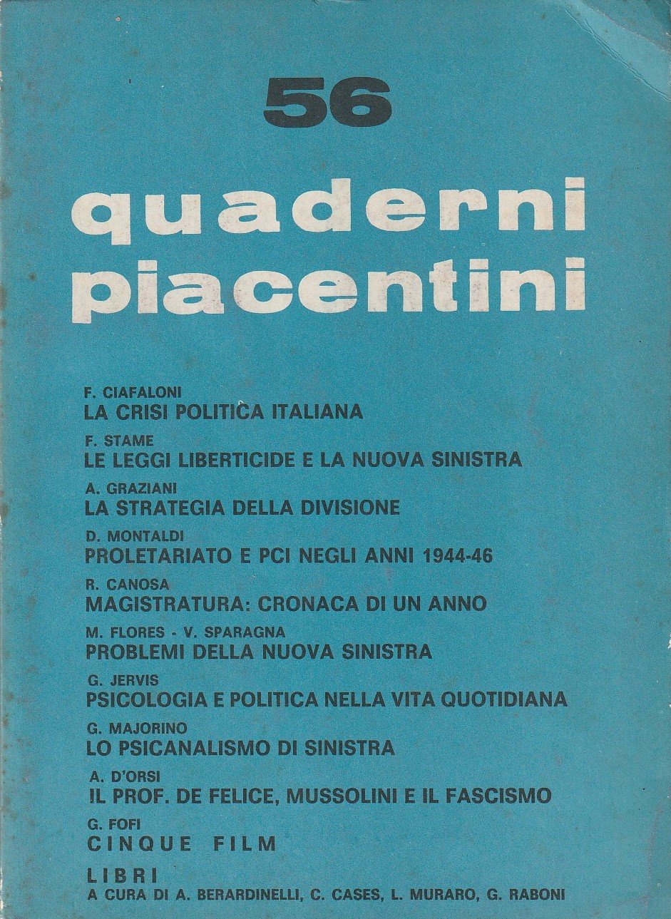 Quaderni Piacentini. Anno XIV. No. 56. Luglio 1975