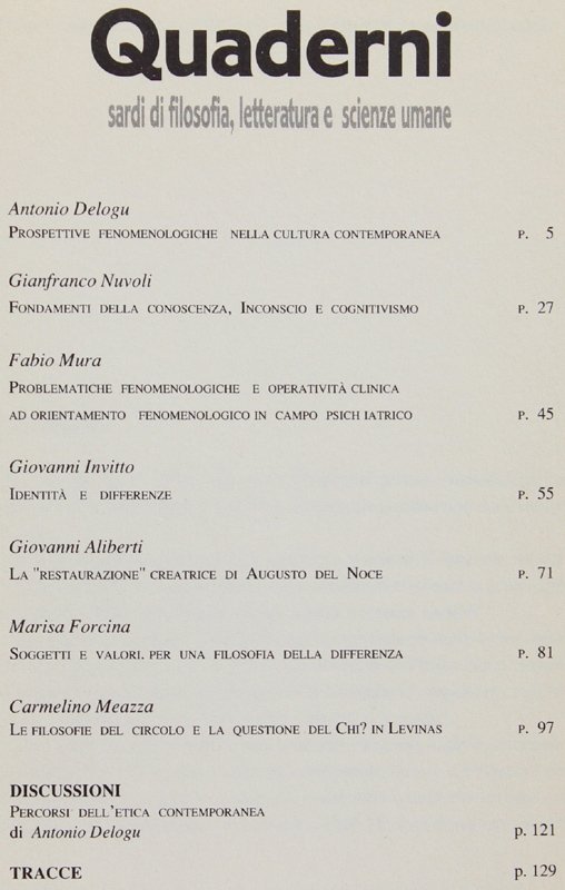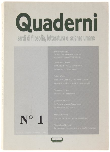 QUADERNI SARDI DI FILOSOFIA, LETTERATURA E SCIENZE UMANE - Anno I. N.1. giugno-dicembre 1994.