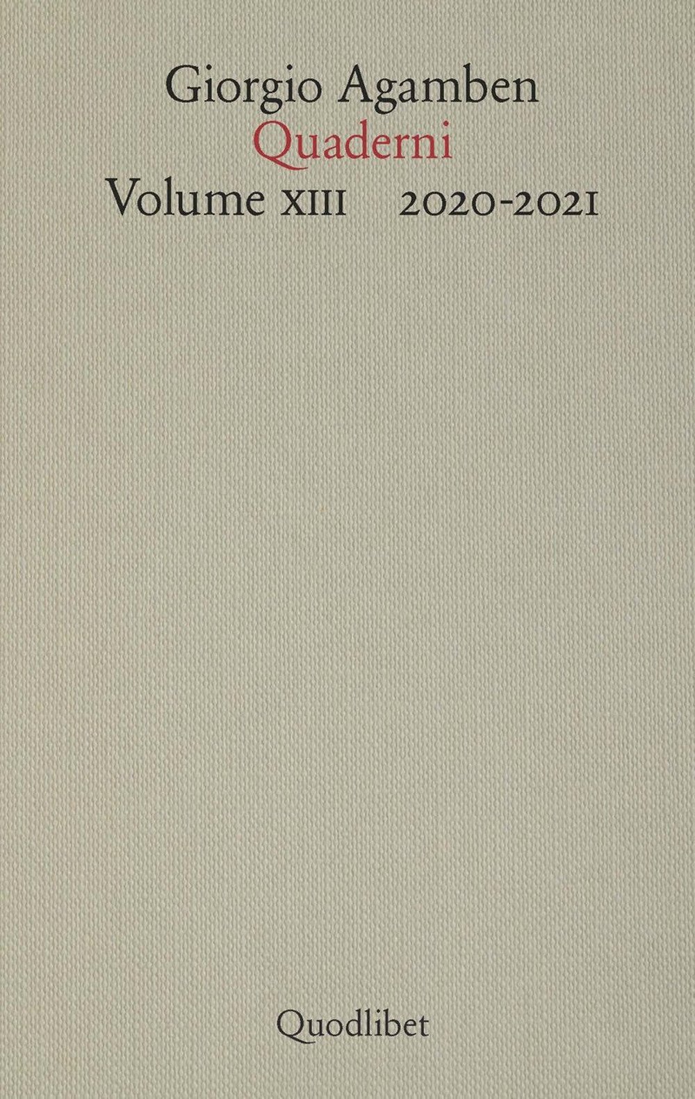 Con questo tredicesimo volume, che qui anticipiamo, continua la pubblicazione integrale dei quaderni di Giorgio Agamben. Di questi quaderni, che contengono appunti di pensiero, note di studio e di lettura e annotazioni su persone, incontri ed eventi particolari, l’autore ha scritto che essi sono forse la parte più viva e preziosa della sua opera. Gli appunti che compongono il volume sono stati redatti durante gli anni dell’emergenza sanitaria, a ridosso della pubblicazione di A che punto siamo? (Quodlibet, giugno 2020) e Quando la casa brucia (Giometti & Antonello, novembre 2020), di cui proseguono le riflessioni. Accanto a materiali di studio, che costituiscono il primo nucleo di alcuni recentissimi saggi dell’autore, questi quaderni privilegiano perlopiù una riflessione libera, non finalizzata alla stesura di nuove opere.