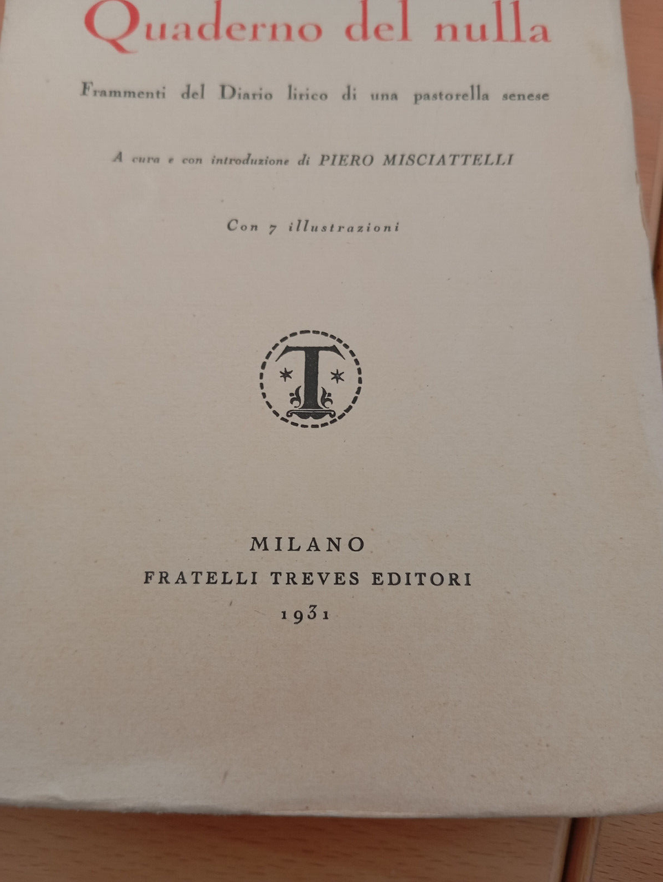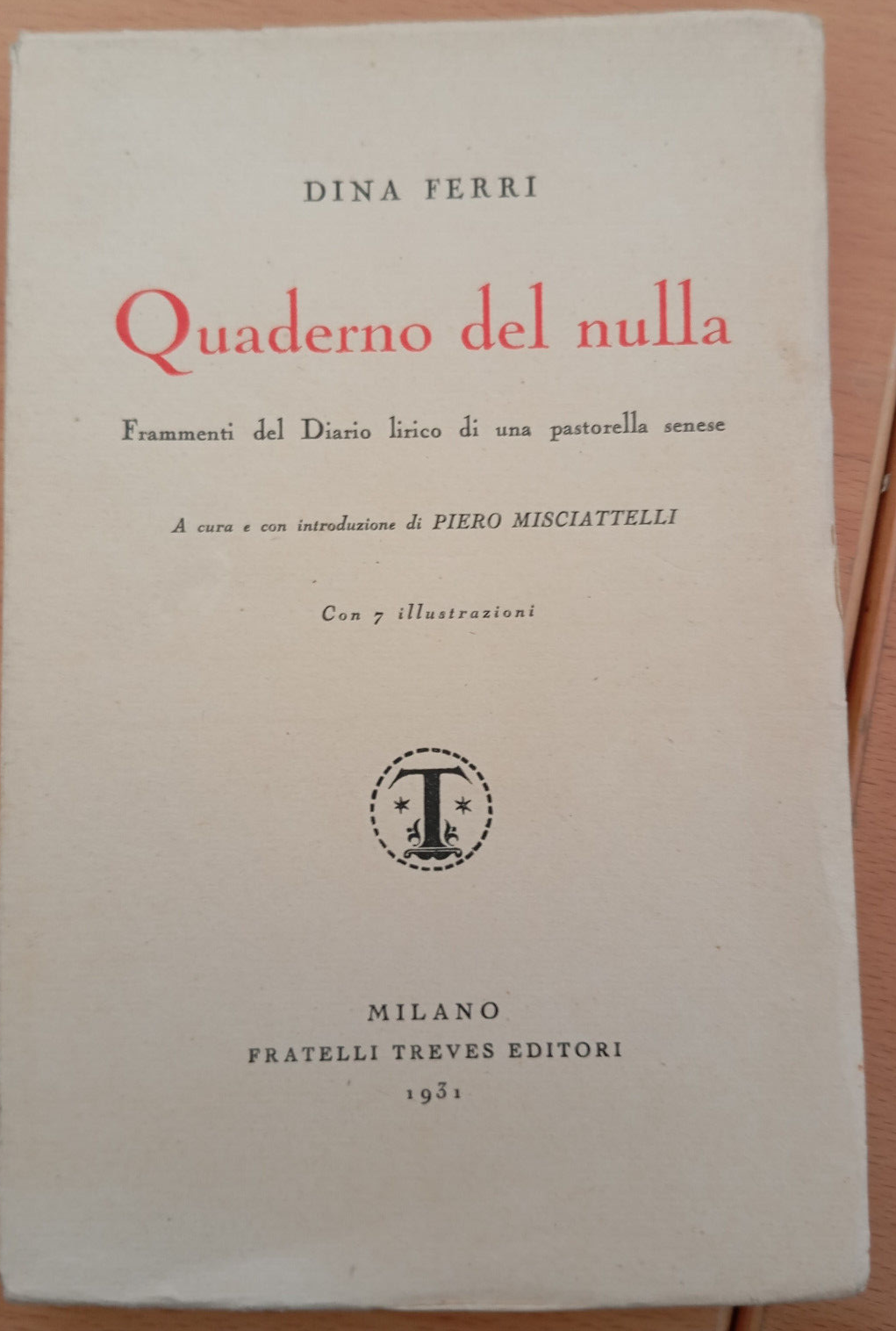 Quaderno del nulla, Dina Ferri, Treves, con 7 illustrazioni, 1931
