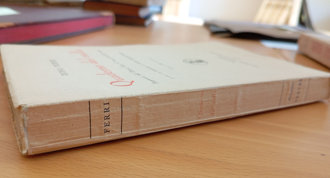 Copertina nel compplesso in buono stato grazie a precedente pellicola di protezione, Alcuni segni di usura e abrasione al dorso, come da foto. Tagli scuriti, pagine ingiallite. Lieve indebolimento della legatura in alcuni punti, ma complessivamente non compromessa, come da foto.