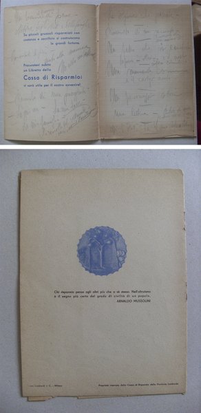 - Stato: BUONE - Misura :20,5x15 da chiuso - Sul retro frase di Arnaldo Mussolini