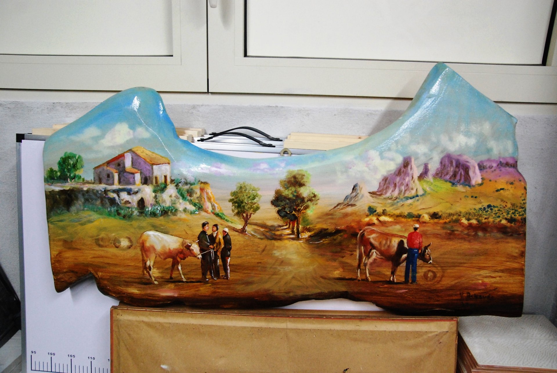 quadro su legno scena agreste con contadini