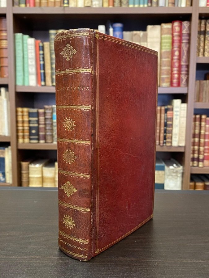 <span style="font-style: normal;">In-8° (cm. 18,8), raffinata legatura antica in pieno marocchino rosso, dorso liscio con titolo e fregi in oro, piatti inquadrati da cornici di triplici filetti in oro, labbri e </span><i>dentelles</i> ornati in oro, tagli dorati, risguardi marmorizzati; pp. [28] 917 [15 di <i>Index notarum</i>] in stato molto buono (lievi e sporadiche fioriture); con bellissimo frontespizio interamente inciso in rame, eleganti testatine, capilettera e finalini xilografici. Bella edizione di questo volume di Claudiano, che fu considerata tra le migliori dalla critica. Cfr. Dibdin 1, 471; Moss 1, 377; Graesse 2, 194; Ebert 4757; Brunet 2,88; Ernesti, Bibl. Lat. 1774, 3, 201. <i>Ex Libris</i> nobiliare applicato al risguardo e un altro figurato applicato al contropiatto di Henry Labouchere, antico <i>Ex dono</i> manoscritto alla prima carta bianca. Superbo esemplare. (L)