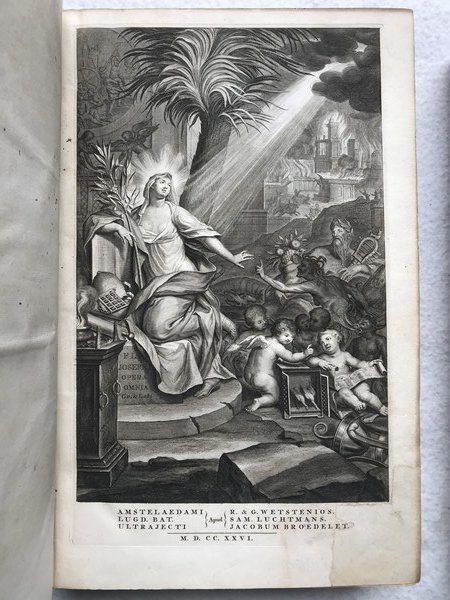 Bella edizione curata e commentata da Sigibertus Haverkamp (1684-1742) sulla base della versione latina di Hudson (storico medievale e traduttore inglese) delle Antichità Giudaiche di Giuseppe Flavio, con numerosi altri contributi di importanti studiosi. Giuseppe Flavio fu storico e uomo politico protetto dalla famiglia Flavia e ne assunse il gentilizio. Nato a Gerusalemme intorno al 37, morì a Roma intorno al 100.