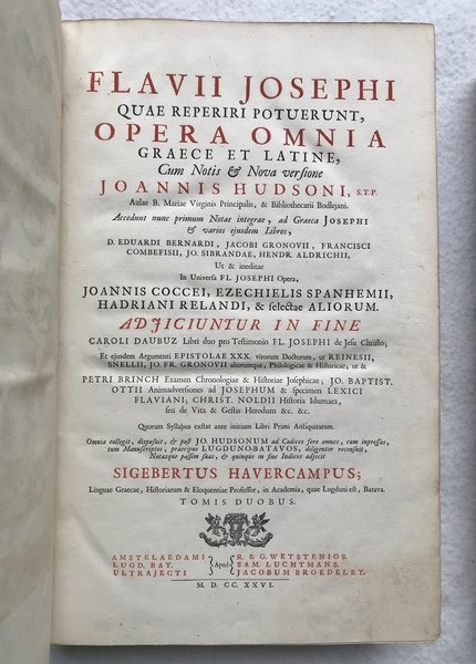IOSEPHUS, Flavius; HAVERKAMP, Siwart; HUDSON, John. Quae reperiri potuerunt, opera omnia graece et latine,…