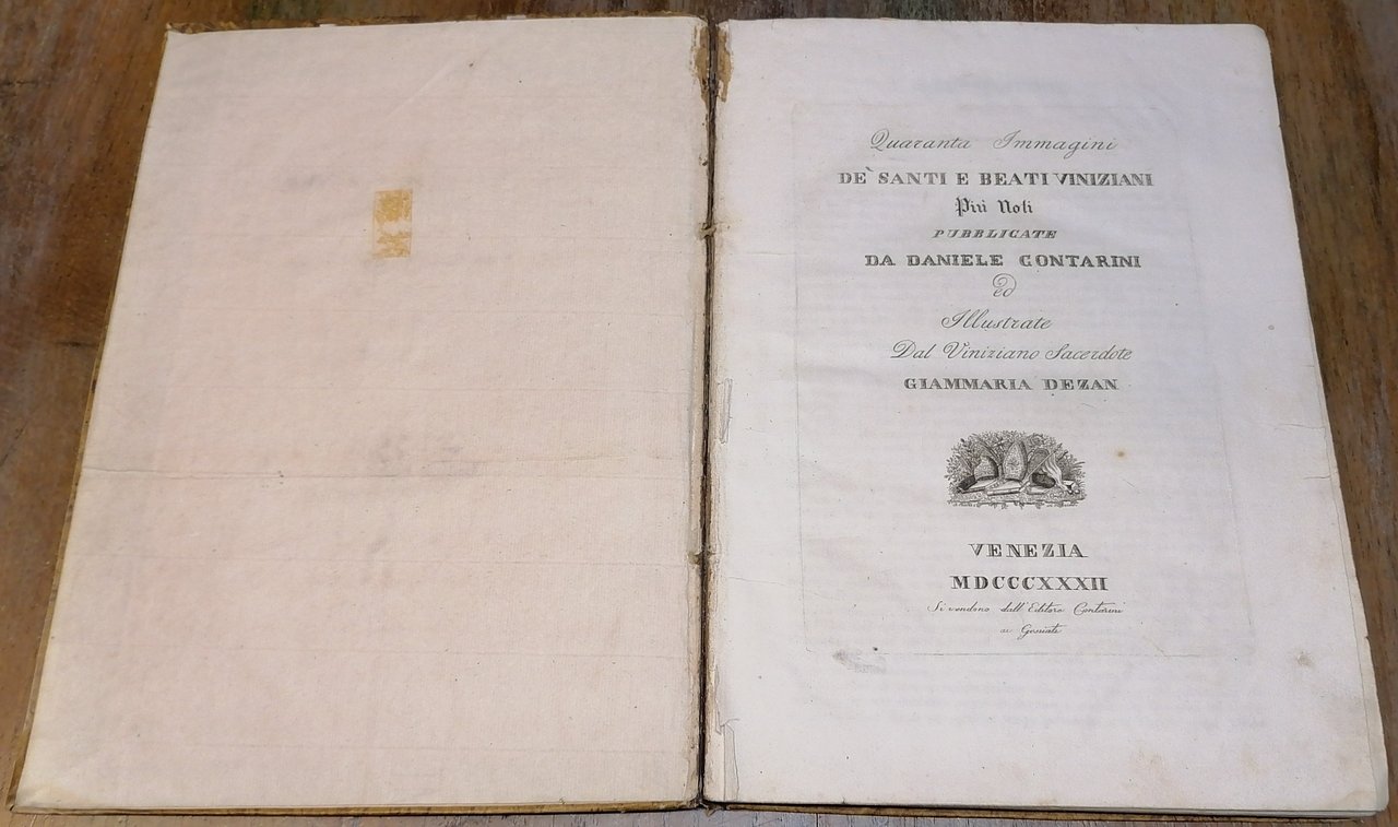 Quaranta immagini de' Santi e Beati viniziani più noti pubblicate da Daniele Contarini ed illustrate dal Viniziano Sacerdote Giammaria Dezan.