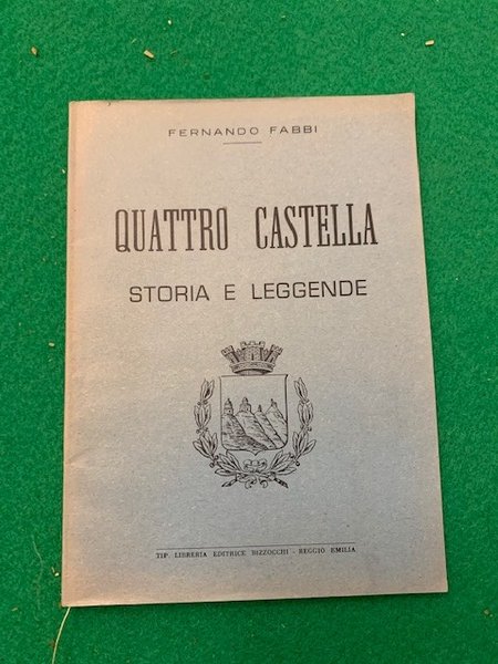 In 8° piccolo; 32 pp. e 2 c. di tav. Brossura editoriale con titolo e stemma al piatto anteriore. Un piccolo strappetto senza perdita di carta al piatto posteriore, ininfluente. Ottimo stato di conservazione. Numerose immagini nel testo. Interessante studio storico dedicato al borgo di Quattro Castella, nel reggiano, ai castelli della zona di Canossa nei territori compresi fra Roncolo, Salvarano, Montecalvo, Muzzadella, Puianello. SI analizzano anche le quattro rocche di Montevetro o Montevecchio, Bibbianello o Bianello, Montezane o Mongiovanni, Monteluzzo o Montelucio. Prima edizione in forma singola, non comune.