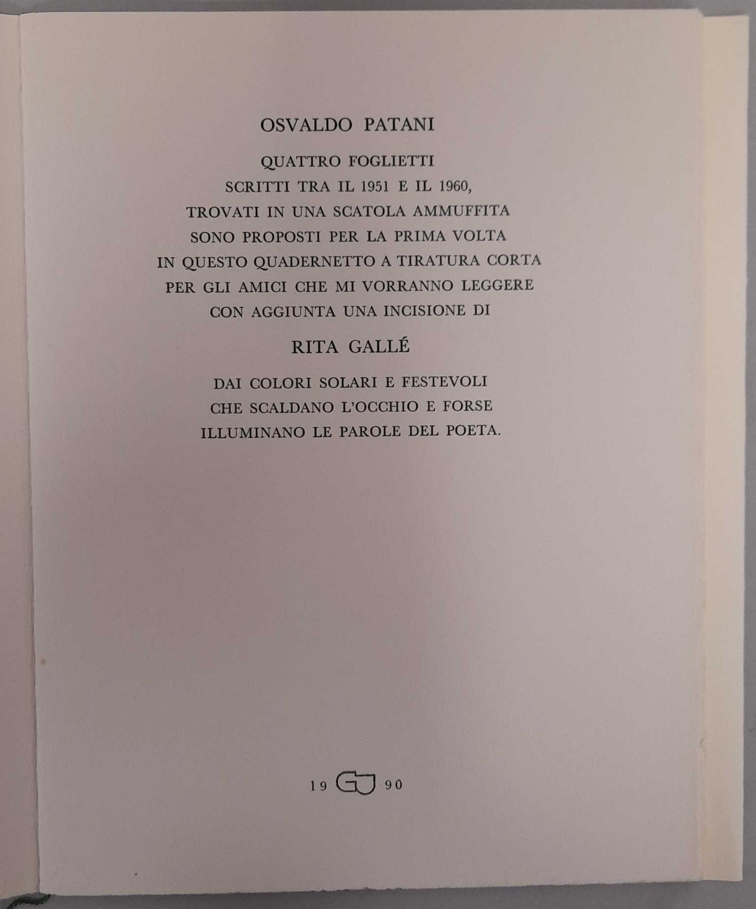 Quattro foglietti scritti tra il 1951 e il 1960 e una incisione di Rita Gallé