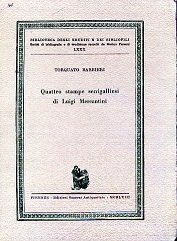 In-8°, pp. 15, (5), brossura editoriale riquadrata. Perfetta copia intonsa. Prima edizione, tirata a soli 333 esemplari numerati (n° 250). Studio bibliografico su quattro rare edizioni impresse a Senigallia fra il 1843 e il 1846 di poesie d'occasione del Mercantini. Biblioteca degli eruditi e dei bibliofili. Scritti di bibliografia e di erudizione raccolti da Marino Parenti, LXXX.