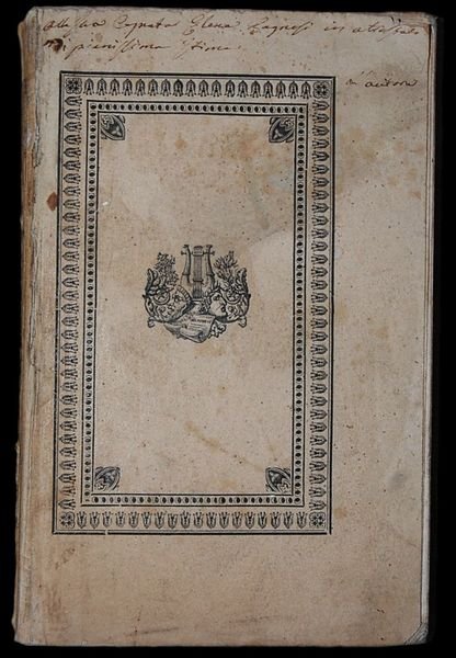 In 8° (18,8x12 cm); XXV, (3), 221, (3) pp. e una fascetta di errata applicata al recto del piatto posteriore. Brossura editoriale con titolo al dorso e cornice con fregi ai piatti. Timbri del censore estense alla prima ed ultima carta che sanciscono la possibilità di vendere l'opera all'interno del ducato estense. Dedica autografa dell'autore alla cognata Elena Bagnesi, al margine alto del piatto anteriore. Le prima XXV pagine stampate in bel corsivo e contengono la dedica al Duca Francesco IV. Qualche leggero segno del tempo alla brossura ma nel complesso esemplare in buone-ottime condizioni di conservazione. Prima ed unica edizione di questo scritto del noto modenese Conte Paolo Abbati Marescotti (1812-1878) che fu, oltre che valente poeta e tragediografo, anche una figura di rilievo della corte estense della prima metà del XIX° secolo. Fu membro della guardia d'onore di Francesco IV. Il volume contiene le tragedie: Galeazzo Sforza; Childeberto II; Pirro; Clarice Visconti. Non comune. Rif. Bibl.: IT\ICCU\UBO\1250378.