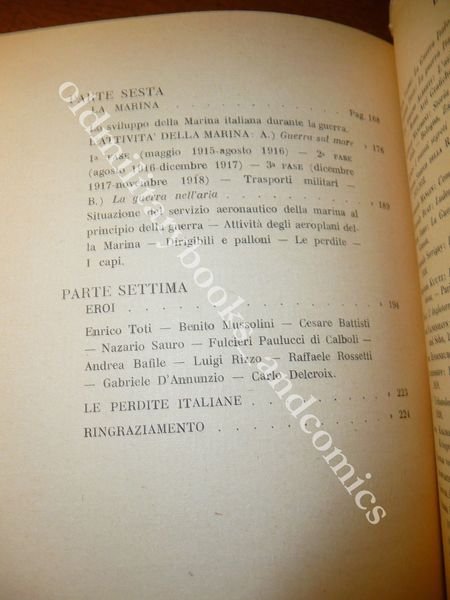 DESCRIZIONE: Edizioni La Prora Milano 1932 br. ed. ill. pp. 229 in 8°. Bellissime piccole illustrazioni n.t. Nella primavera del 1926 una delegazione di mutilati del Belgio fece visita ai mutilati italiani: la narrazione di questo incontro è un dovere verso i più gloriosi rappresentanti dei figli d’Italia che combatterono al nostro fianco.Ovviamente il vol. non si occupa solo della visita, ma prende in considerazione la Prima Guerra Mondiale, con la Battaglia del Piave, i decorati, l'impiego della Marina e dell'Aviazione, tavole sinottiche della WWI etc. CONDIZIONI: Ottime/Perfette. PESO / WEIGHT: 294 gr. without package