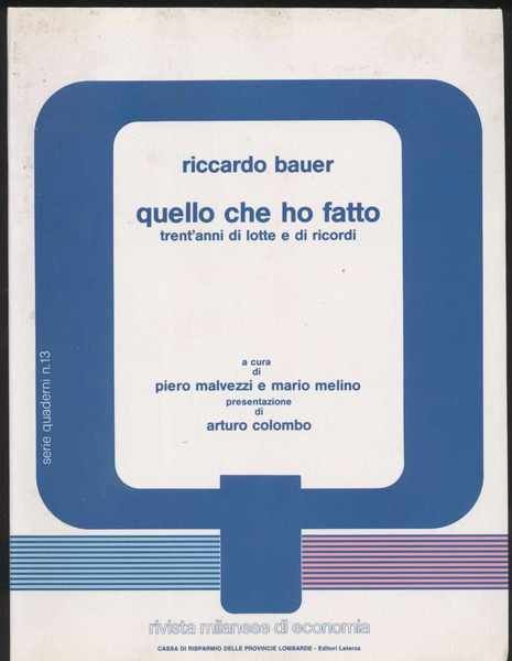 Quello che ho fatto trent'anni di lotte e di ricordi - A cura di Piero Malvezzi e Mario Melino presentazione di Arturo Colombo
