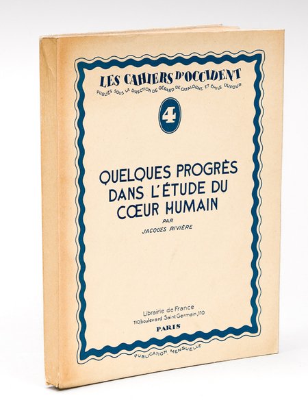 Avec un portrait de l'auteur par Albert Guindet, un des 1800 exemplaires sur papier d'alfa Navarre numérotés de 376 à 2175 (n° 2160), 1 vol. grand in-8 br., Librairie de France, Paris, 1927, 196 pp. Bon exemplaire, dédicacé par Isabelle Rivière "pour le docteur J. Blechmann en témoignage de reconnaissance".