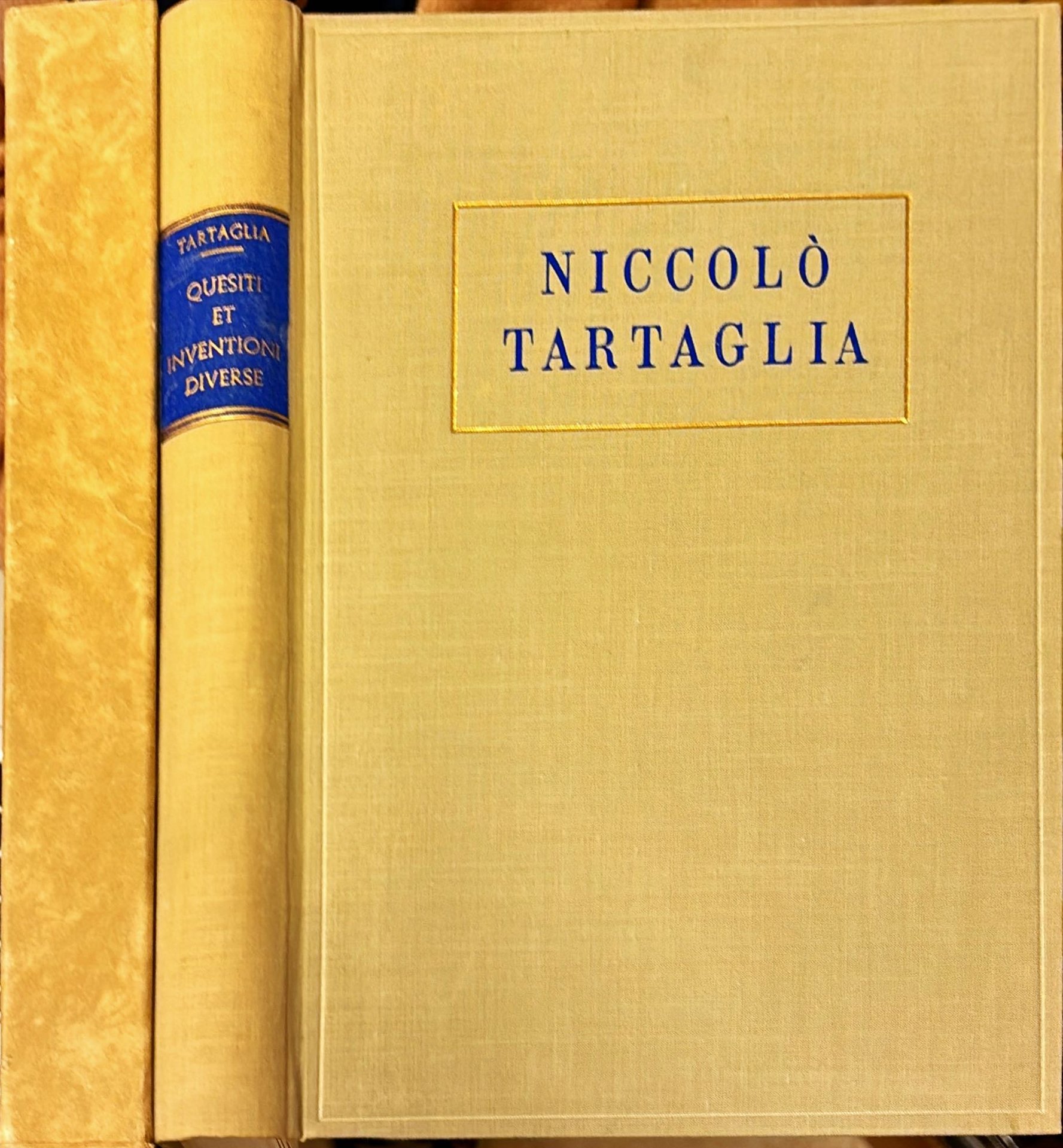 Riproduzione in facsimile dell'edizione del 1554 edita con parti introduttorie da Arnaldo Masotti. Premessa di Osvaldo Passerini. In-8°, pp. LXXXV-129 con 8 tavv. b/n f.t. di cui 1 in antip. protetta da velina. Leg. edit. p. tl. grigia con tit. blu entro cornice filettata impressa in oro al piatto, tit. oro su tass. blu al ds., tit. ocra entro doppia cornice filettata ocra al frontespizio, astuccio cart. grigio marmorizzato. Minime macchiette al taglio lat. Ottimo. Pubblicazione celebrativa del quarto centenario della morte di Niccolò Tartaglia. Edizione di 900 esemplari. Copia numero 452.