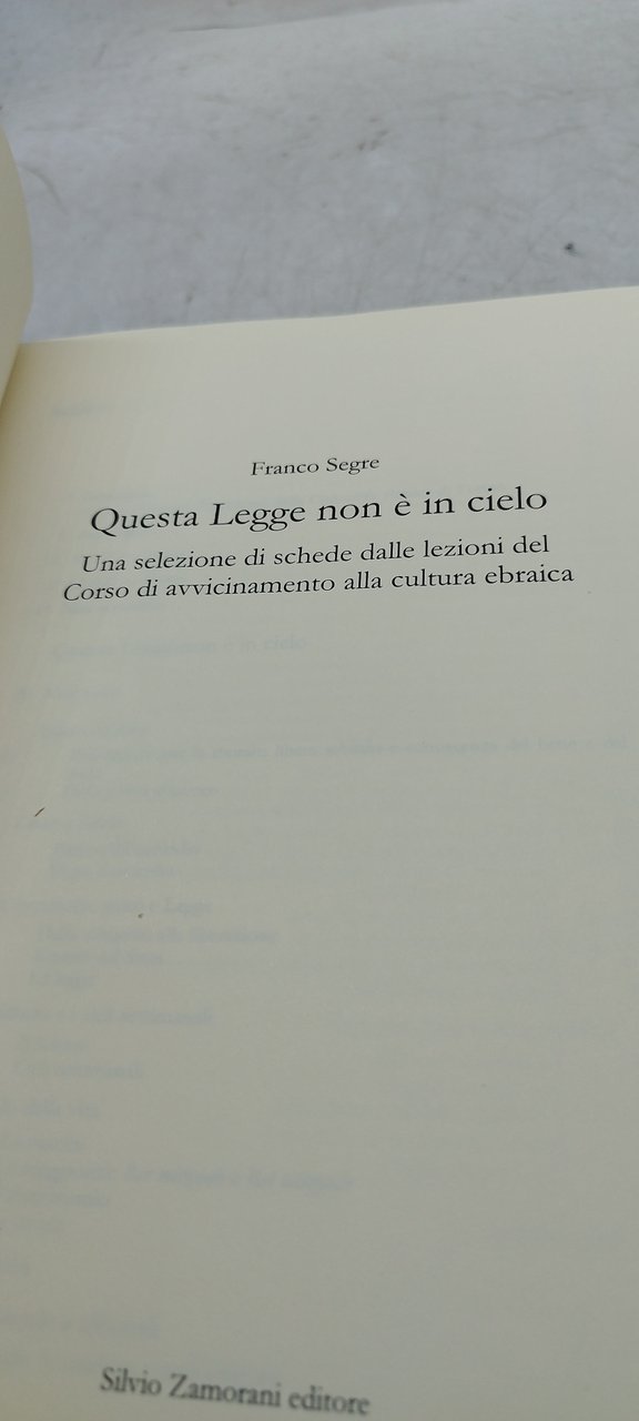 franco segre questa legge non è in cielo franco segre. , silvio zamorani editore 2017 italiano, 551 °°brossura