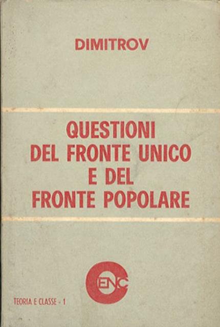 363 p. : 19 x 13 cm. Teoria e classe, 1. Si tratta di una raccolta antologica degli scritti di Dimitrov, dirigente dell'Internazionale comunista, sulla lotta contro il fascismo elaborati e diffusi tra i 1935 e il 1939. Brossura editoriale, coperta in cartoncino flessibile con titolo impresso in rosso al piatto e al dorso. Qualche leggero segno del tempo alla coperta e ai tagli (ingiallimento della carta), per il resto esemplare integro. Codice libreria 7538.