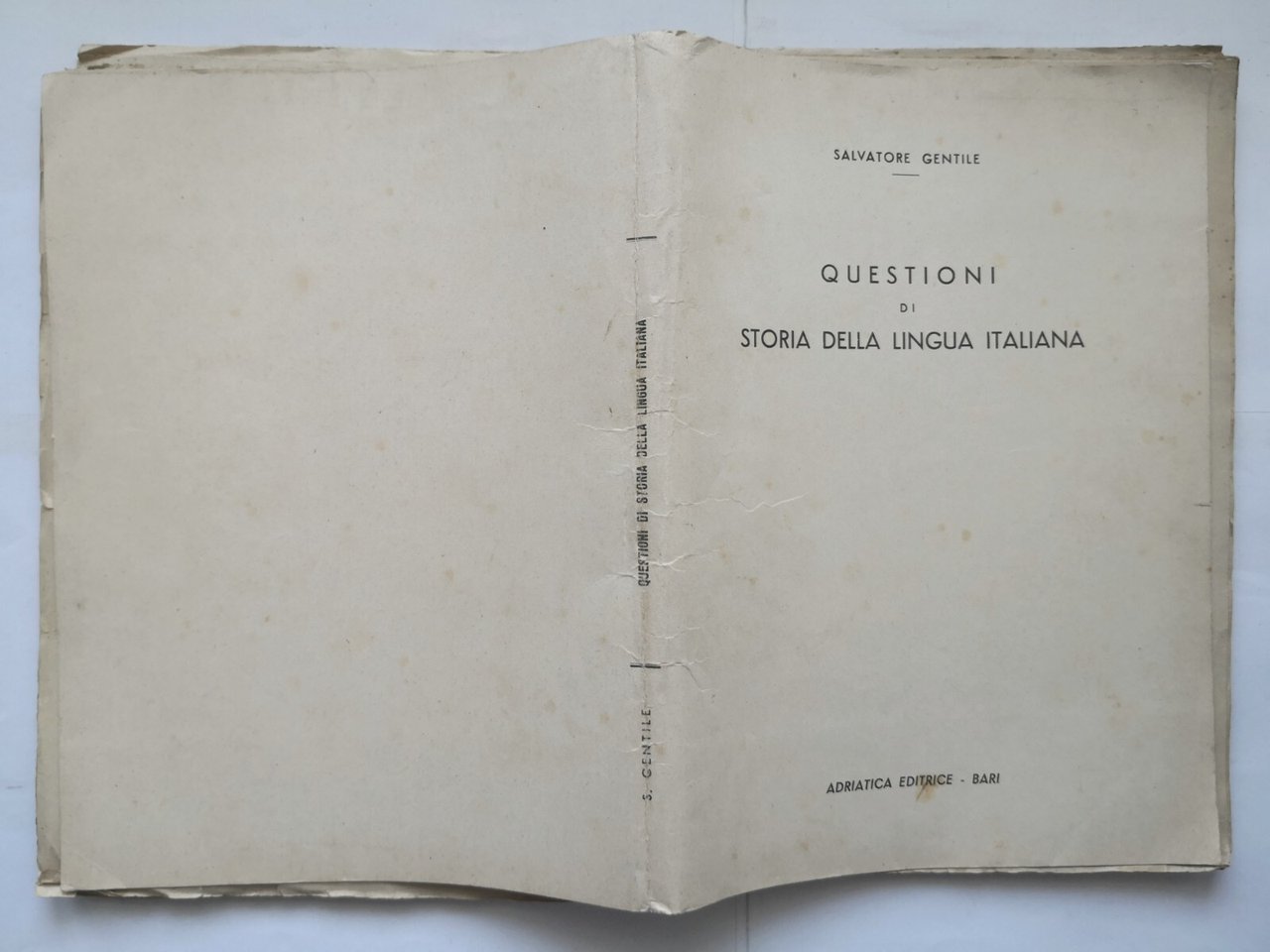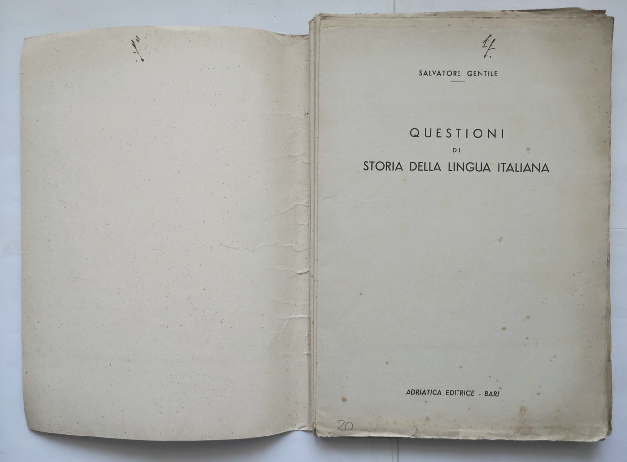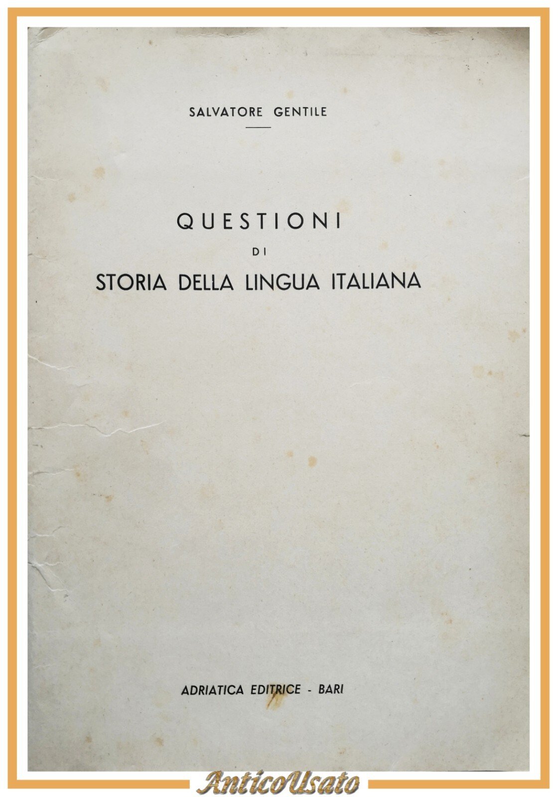 QUESTIONI DI STORIA DELLA LINGUA ITALIANA Salvatore Gentile Libro Adriatica