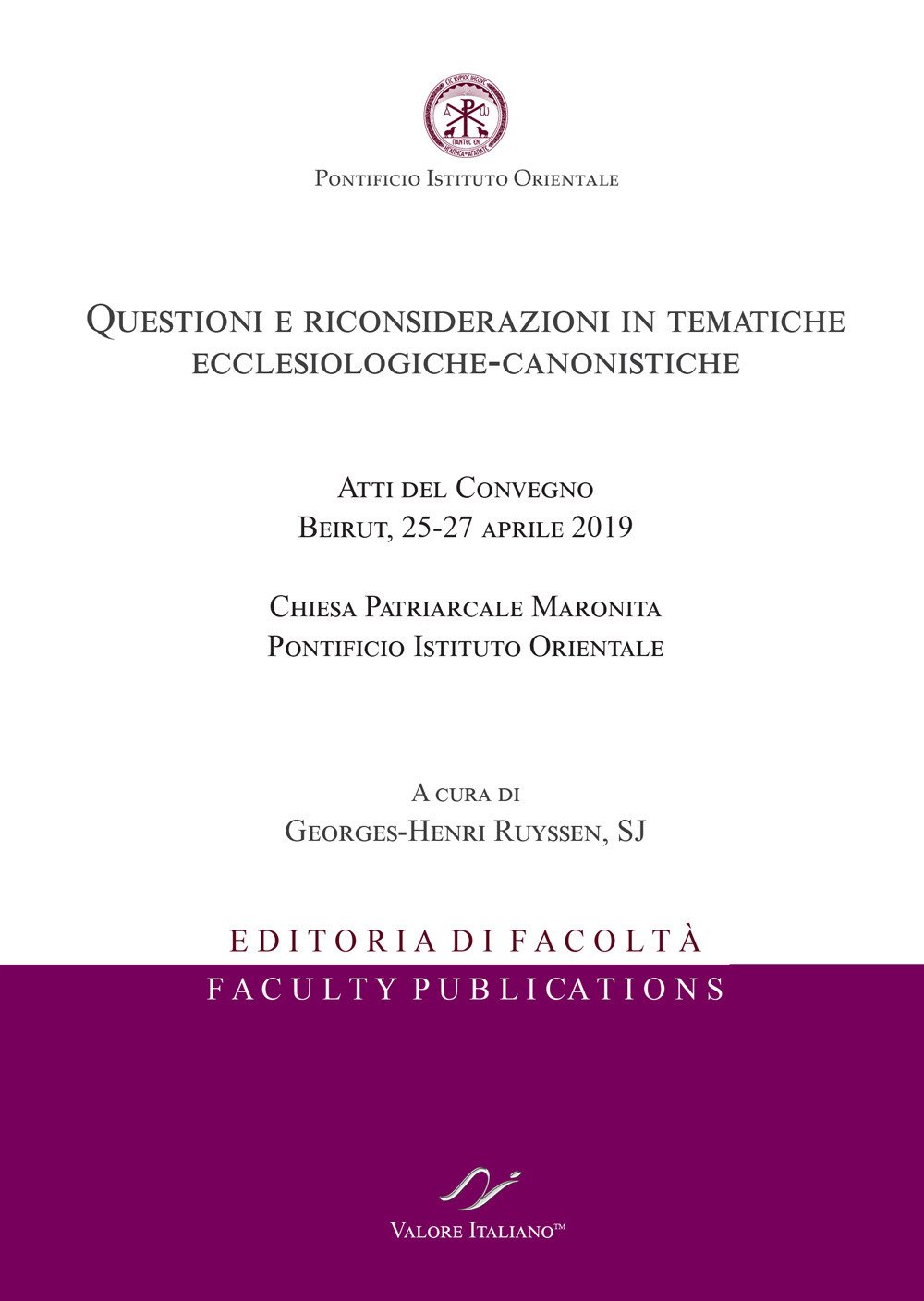 Questioni e riconsiderazioni in tematiche ecclesiologiche-canonistiche. Atti del Convegno (Beirut, 25-27 aprile 2019)