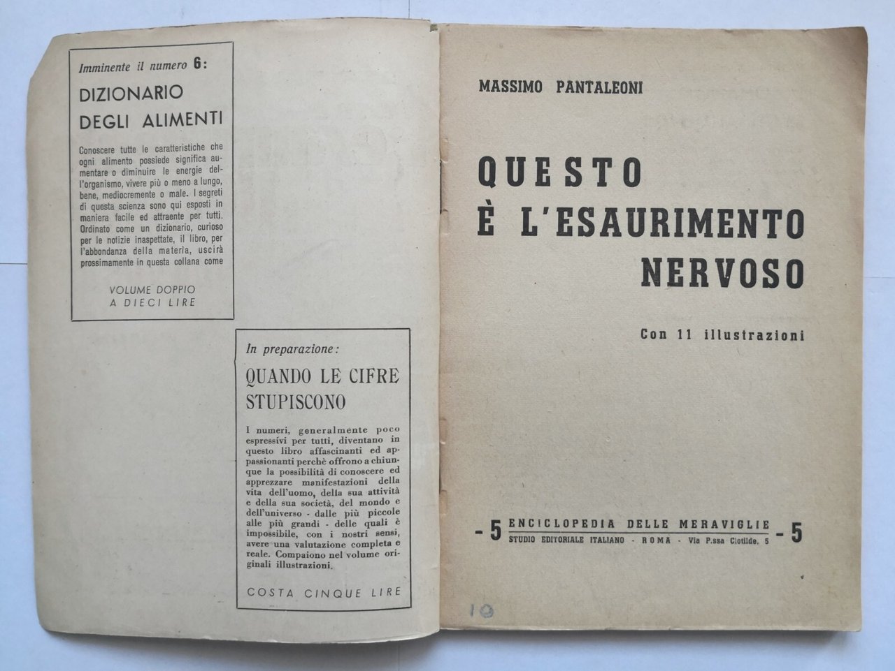 QUESTO È L'ESAURIMENTO NERVOSO di Massimo Pantaleoni 1944 Libro Studio editorial