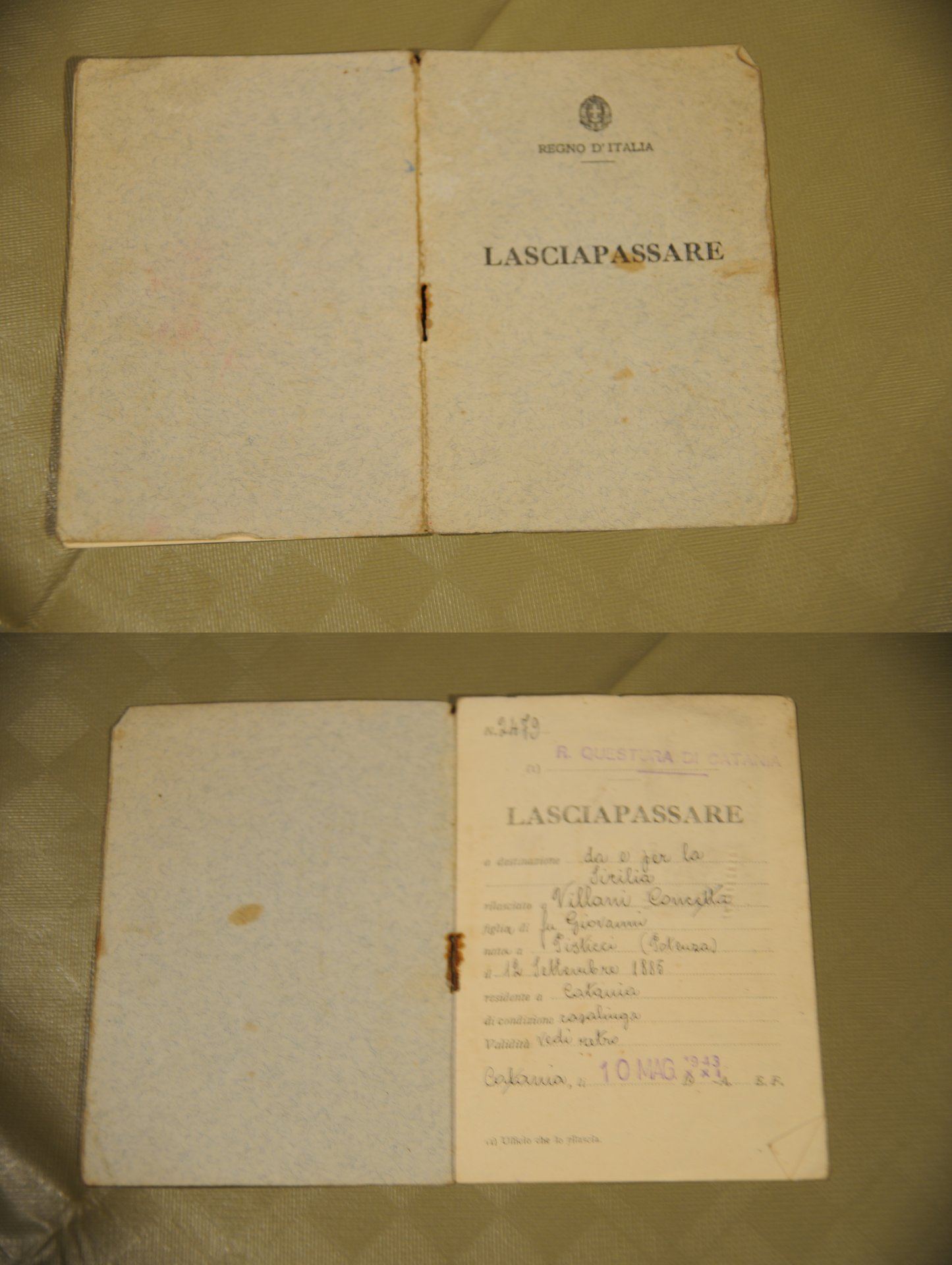 regno d'italia lasciapassare questura di catania. .