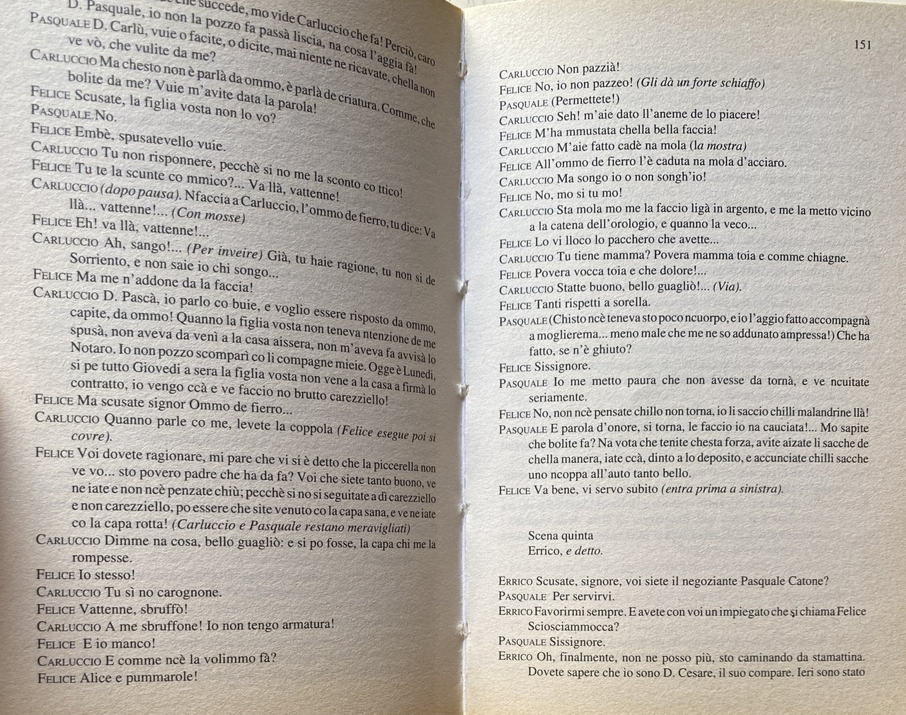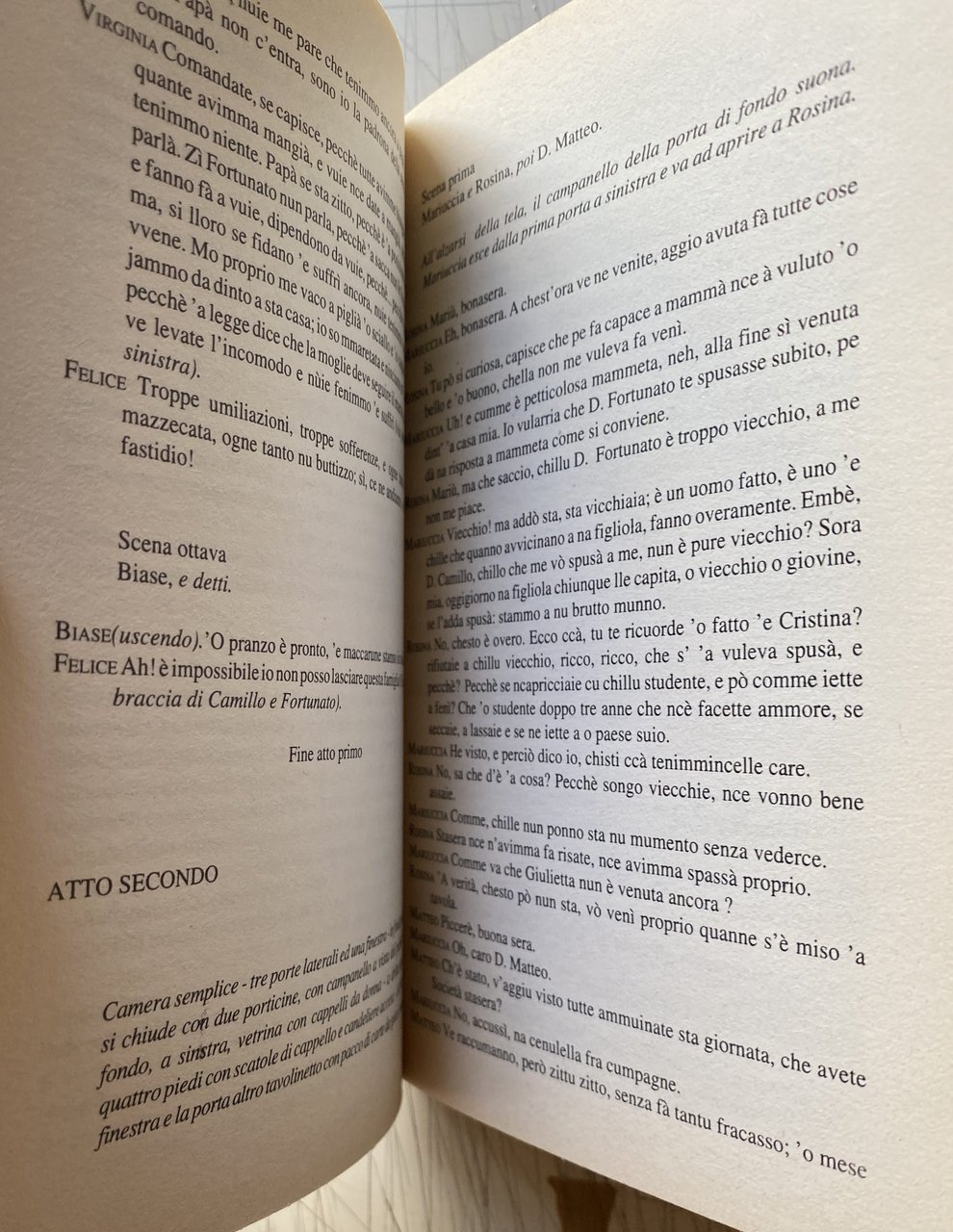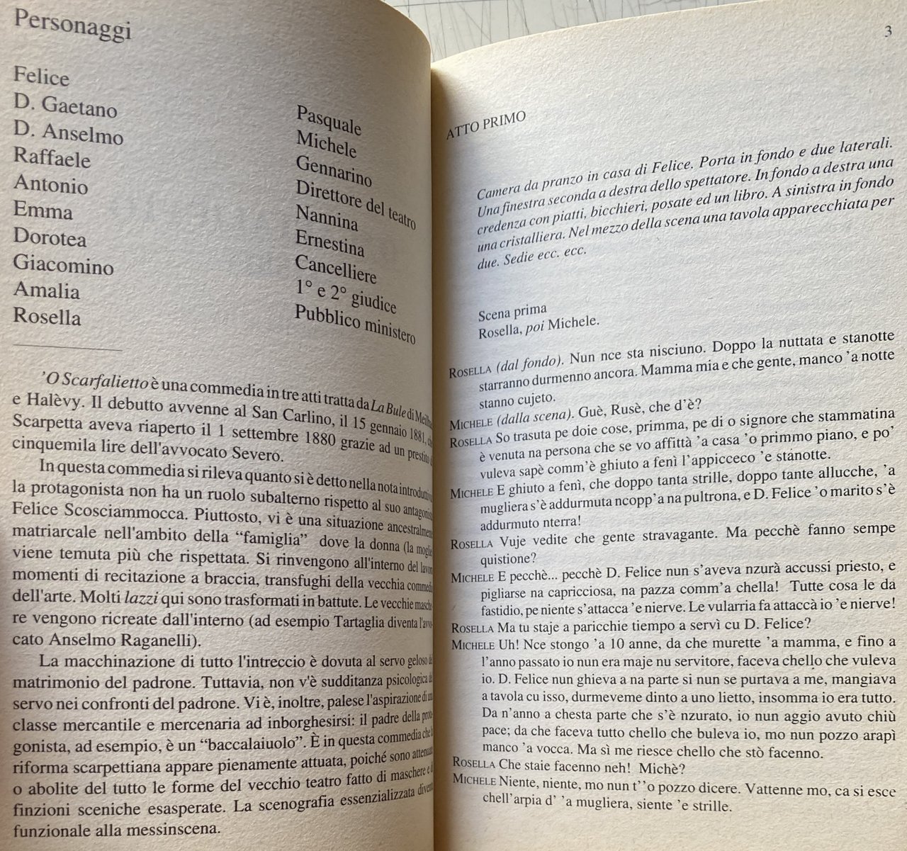 Soggetti: Letteratura teatrale, Teatro, Spettacolo, Commedie, Commedia napoletana, Comicità, Ironia, Testi teatrali, Classici, Libri rari fuori catalogo, Napoletanità, Dialetto napoletano, Opere dialettali, Cinema, Bibliografia Riferimento Collezionismo Messinscena Critica Interpretazione 'O Scarfalietto Tre pecore viziose No turco napoletano Na Santarella Totò Miseria e nobiltà Felice Sciosciammocca Arte comica Cultura partenopea Novecento Ottocento Atti Repertorio Società Donne Satira Classe media Borghesia Riforma Personaggi femminili Vernacolo Ceto medio Vita quotidiana Battute Gag Drammaturgia Edoardo De Filippo Benedetto Croce San Carlino Bellini Roberto Bracco Salvatore Di Giacomo Raffaele De Crescenzo Adelina Magnetti Parodie Figlia di Iorio Gabriele D'Annunzio Sannazaro Cafè Chantant Fiorentini Ajello Russo Vittorio Viviani Rasi Leonelli Compagnie Teatri Storia A. Petito Successo Applausi Pochades francesi Figli Vincenzo Domenico Maria Peppino Titina De Filippo Ernesto Murolo Eduardo Passarelli Pasquale Chiaia Vomero Salone Margherita Mario Martone Sciantose Le Parisien Nutrice Gino Rossetti Mario Mattoli Giorgio Pàstina Tiziana Paladini Saggi Napoli Natale in casa Cupiello Nobilissima Libero Bovio Palcoscenico Pubblico Successi Ferdinando Russo Figlio Gandusio Parisi Frak Carovigna Umorismo Theatrical literature Theater Entertainment Comedies Neapolitan comedy Comedies Irony Theatrical texts Classics Rare books out of print Neapolitanism Dialect works Bibliography Reference Collectibles Staging Criticism Interpretation Poverty and nobility Comic art Culture Twentieth Nineteenth century Acts Repertoire Society Women Satire Middle class Bourgeoisie Reform Female characters Vernacular Daily life Jokes Dramaturgy Parodies Daughter Theater Companies History Success Applause Children Essays Naples Christmas Most Noble Public Stage Successes Son