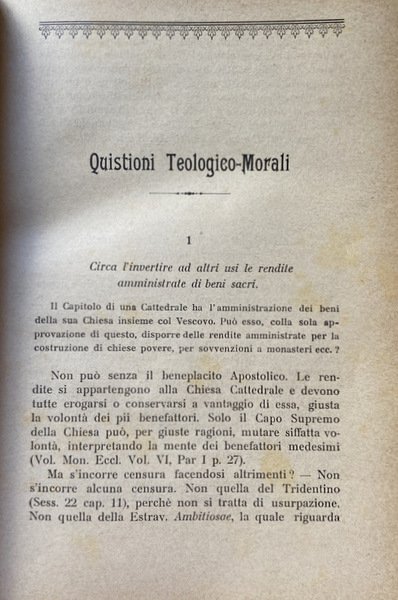 QUISTIONI TEOLOGICO-MORALI DI MATERIE RIGUARDANTI SPECIALMENTE I NOSTRI TEMPI