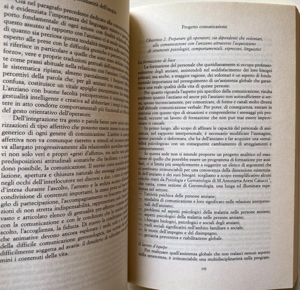 Soggetti: Società, Politica sociale, Comunicazione, Attualità, Argomenti d'interesse generale, Gruppi sociali, Persone anziane, Gestione, Terza età, Vecchiaia, Scienze sociali, Studi culturali, Une architecture nouvelle pour l'habitat des personnes âgées, Comunità, Adulti, Genitori, Ospizio, Tempo libero, Famiglia, Figli, Il Melo, Cooperazione, Gerontologia, Relazioni, Vita sociale, Badante, Assistenza, Attività, Mappe mentali, Autosufficienza, Degenza, Autonomia, Animazione, Centri, Ospiti, Volontari, Case di riposo, Obiettivi, Spazio, Glossario, Lavoro, Affettività, Creatività, Interessi, Terapie, Musica, Colori, Suoni, Percorsi, Orientamento, Mensa, Ristorante, Luoghi di ritrovo, Soggiorno, Chiesa, Abitudini, Salute, Paure, Morte, Malattia, Psicologia, Terapie, Memoria, Storia, Ritmo circadiano, Orologio biologico, Operatori, Quotidianità, Autostima, Ricordi, Vita comunitaria, Linguaggio, Televisione, Radio, équipe, Occupazioni, Coscienza, Ascolto, Linguaggio, Dialetti, Amicizia, Viaggio, Progetti, Socialità, Amore, Sessualità, Coppie, Gioco, Barriere, Libido, Propriocezione, Laboratorio, Scultura, Manualità, Uscite, Vacanze, Nonni, Feste, Nipoti, Saggistica, Libri Vintage Fuori catalogo, Society, Social policy, Communication, Current affairs, Topics of general interest, Social groups, Elderly people, Management, Senior citizens, Old age, Social sciences, Cultural studies, Community, Adults, Parents, Hospice, Leisure, Family, Children, Cooperation, Gerontology, Relations, Social life, Caregiver, Assistance, Activities, Mind maps, Self-sufficiency, Hospitalization, Autonomy, Animation, Centers, Guests, Volunteers, Nursing homes, Goals, Space, Glossary, Work, Affectivity, Creativity, Interests, Therapies, Music, Colors, Sounds, Paths, Orientation, Canteen, Restaurant, Hangouts, Living room, Church, Habits, Health, Fears, Death, Illness, Psychology, Therapies, Memory, History, Circadian rhythm, Biological clock, Operators, Everyday, Self-esteem, Memories, Community life, Language, Occupations, Consciousness, Listening, Language, Dialects, Friendship, Travel, Projects, Sociality, Love, Sexuality, Couples, Game, Barriers, Proprioception, Sculpture, Manual skills, Outings, Holidays, Grandparents, Parties, Grandchildren, Non-fiction, Out of print books