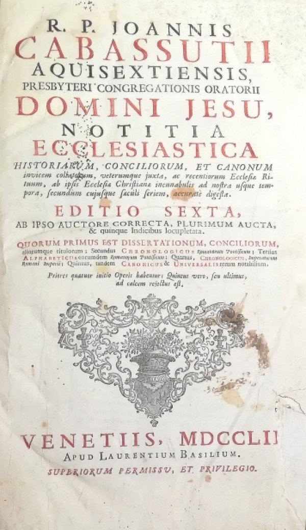 R. P. JOANNIS CABASSUTII AQUISEXTIENSIS, PRESBYTERI CONGREGATIONIS ORATORII DOMINI JESU, NOTITIA ECCLESIASTICA...