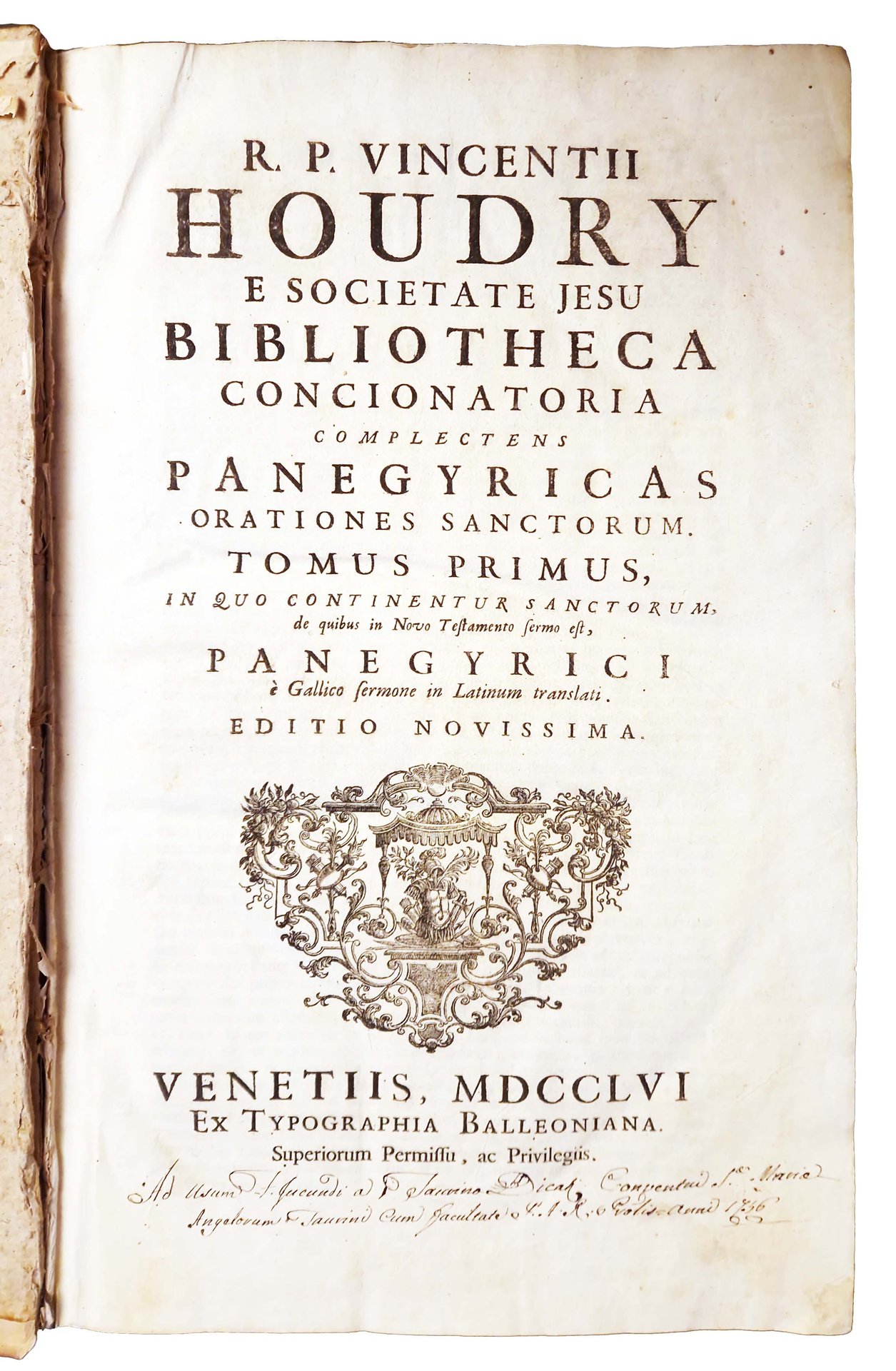 R. P. Vincentii Houdry e Societate Jesu Bibliotheca concionatoria complectens Panegyricas orationes sanctorum. Tomus primus [-quintus]. Editio novissima.