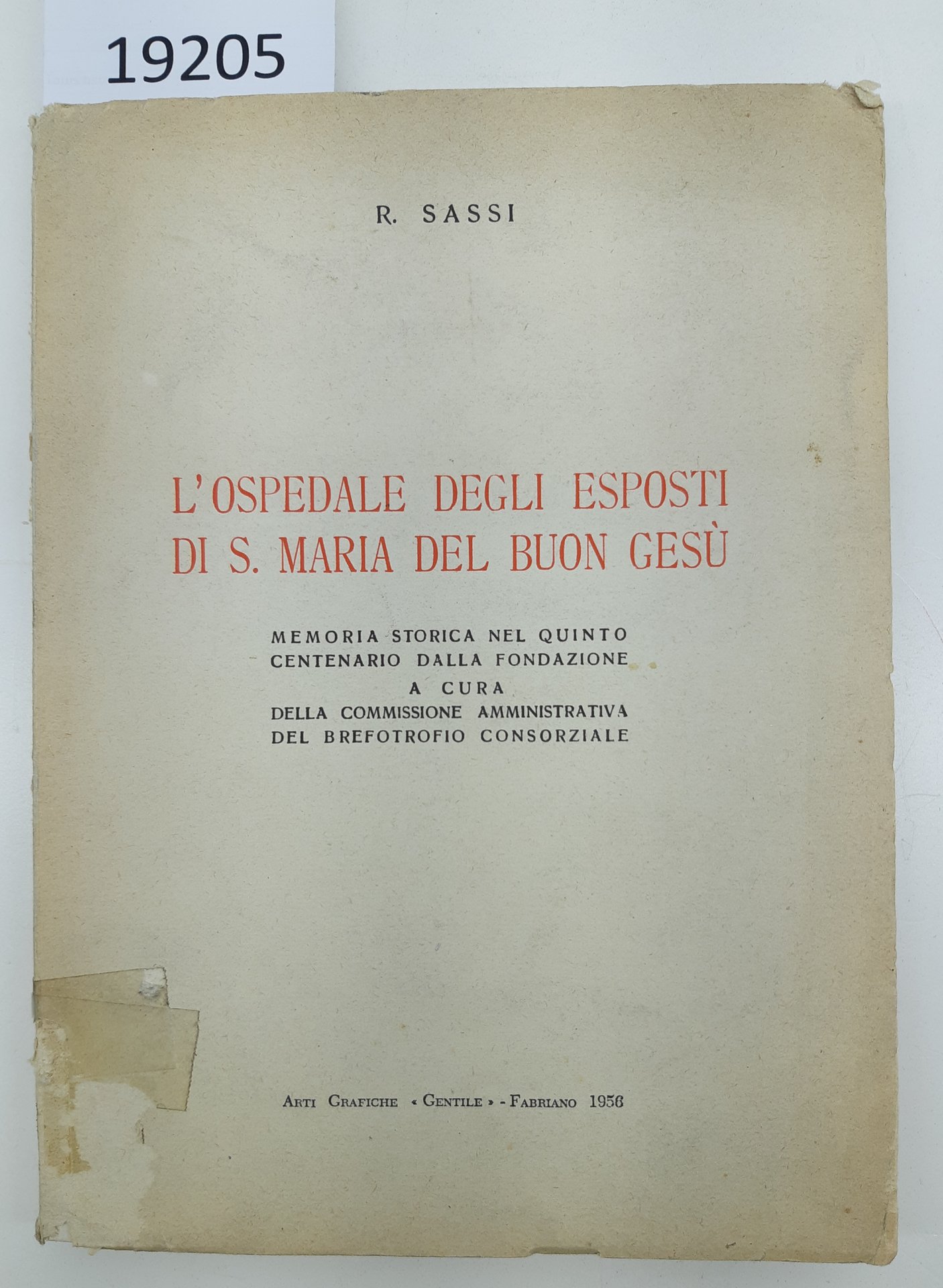 R. Sassi L'ospedale degli espositi di Santa Maria del buon Gesù Fabriano 1956