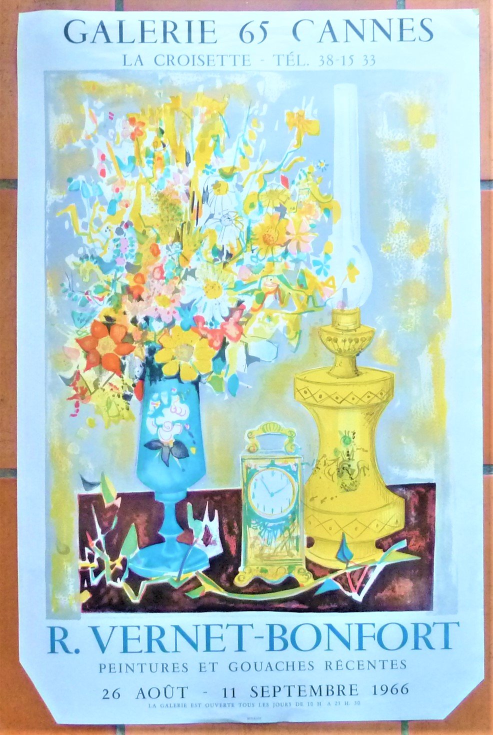 R. Vernet-Bonfort. Un affiche éditée à l'occasion de l'exposition de l'artiste à "La Galerie 65 Cannes"; du 26 août au 11 septembre 1966.