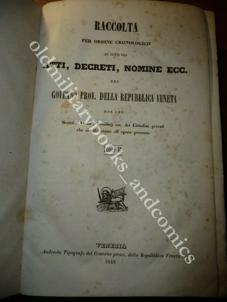RACCOLTA ATTI DECRETI NOMINE DEL GOVERNO PROVVISORIO DI VENEZIA 1848 4 volumi