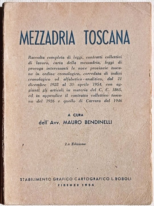 Raccolta completa di leggi, contratti collettivi di lavoro, carta della mezzadria, leggi di proroga interessanti le nove provincie toscane in ordine cronologico dal 21 dicembre 1928 al 30 aprile 1954…