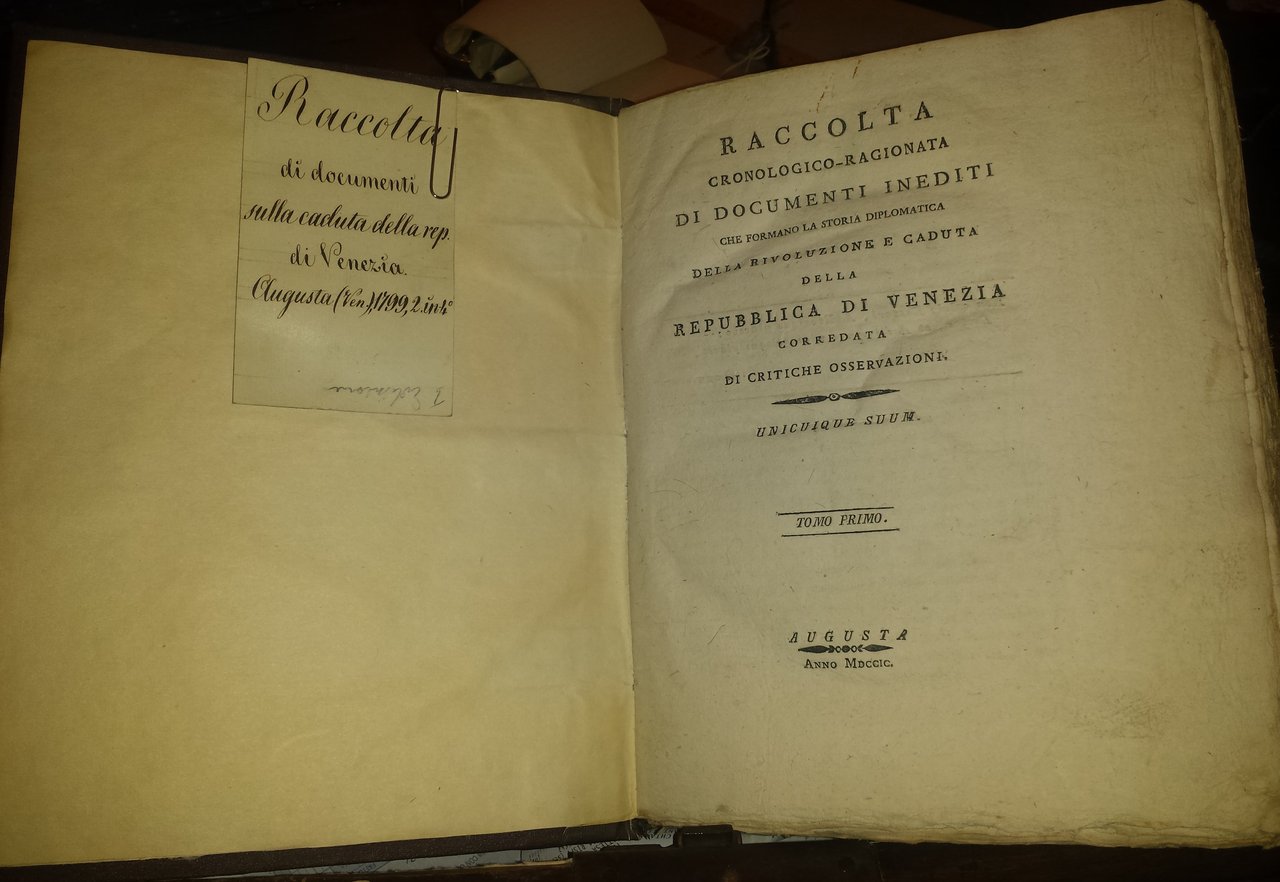 Raccolta cronologico-ragionata di documenti inediti che formano la storia diplomatica della rivoluzione e caduta della Repubblica di Venezia corredata di critiche osservazioni. Tomo primo-secondo