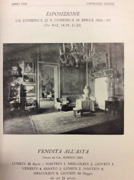 RACCOLTA D'OPERE PITTORICHE DAL SEC. XV AD OGGI E D'ARTE DECORATIVA ANTICA. - Esposizione e vendita all'asta nel Palazzo Mannati - Milano.