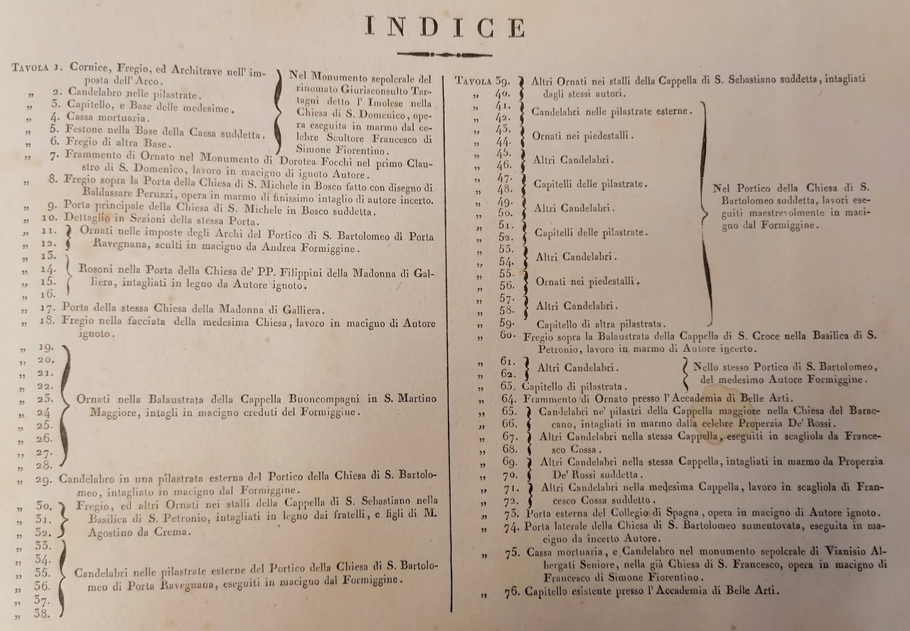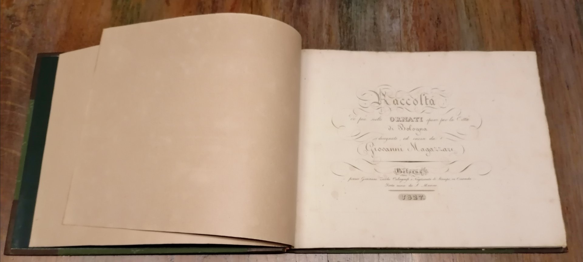 Raccolta de' più scelti ornati sparsi per la Città di Bologna, disegnati, ed incisi da Giovanni Magazzari.