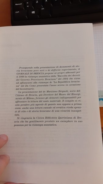 Ristampa anastatica del testo del 1804 sotto la Repubblica Cisalpina.