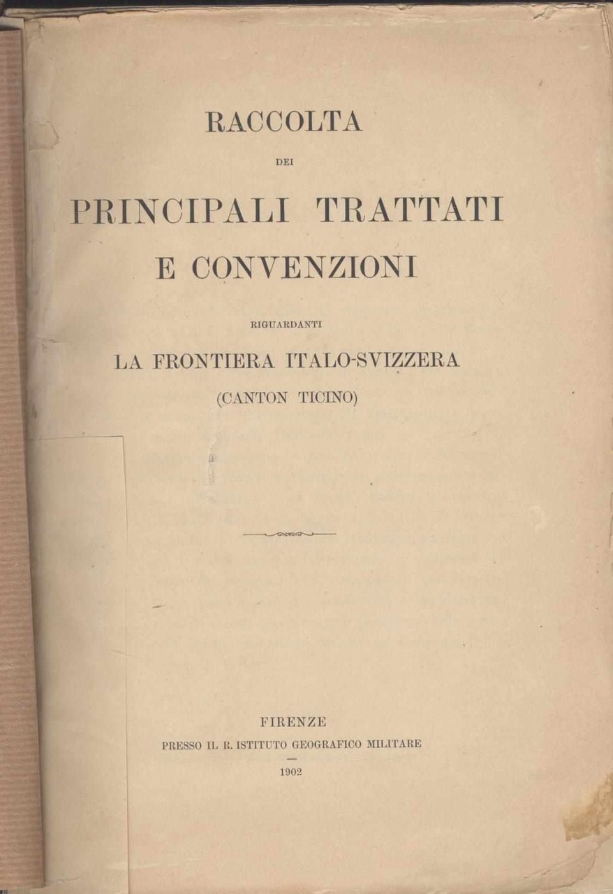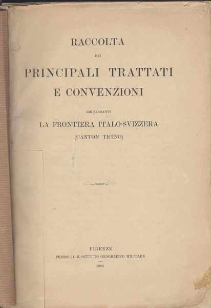 Raccolta dei principali trattati e convenzioni riguardanti la frontiera italo-svizzera (Canton Ticino)