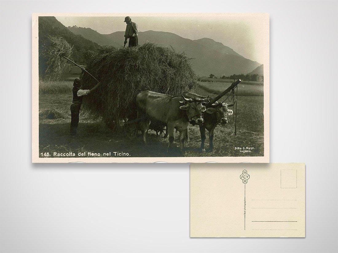 Cartolina Raccolta del fieno nel Ticino, non viaggiata Dimensioni: 9 x 14 cm