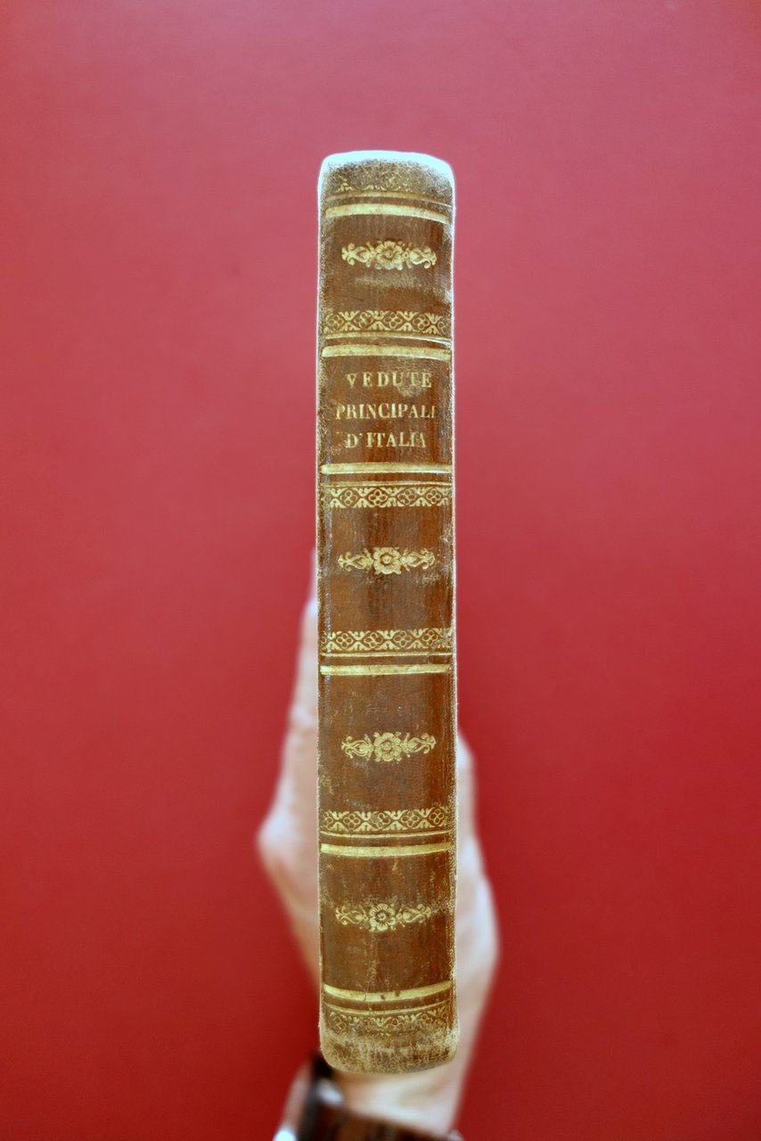 † Raccolta di 100 vedute principali dell'Italia pubblicate da Gio. Zecchi calcogrago, litografo e negoziante di stampe in Bologna Presso l'editore Gio. Zecchi Negoziante di Stampe, Bologna 1833; cm 17x21; pp. [4], pi˘ 100 belle tavole incise in b/n a piena pagina, realizzate da vari esperti incisori (Franceschini, Romagnoli, Rosaspina, Zecchi, Nini, ecc.). Legatura d'epoca in mezza pelle con titolo e fregi impressi in oro al dorso. Mancanza della tavola numero 46. † Condizioni di conservazione Esemplare in buone condizioni con tracce d'uso e lievi segni del tempo; coperta con marginali mancanze ai piatti, lievi abrasioni principalmente alle cerniere e alle cuffie. Interni buoni con alcune piccole leggere bruniture e qualche lieve marginale alone. Margini di qualcuna delle ultime tavole con una circoscritta leggera ombra di gora che non interessa l'illustrazione. † Mancanza della tavola numero 46 (le tavole totali sono quindi 99 su 100). Esemplare molto raro, le cui tavole sono di notevole qualit‡ grafica e artistica. † SETT213.L19963 N