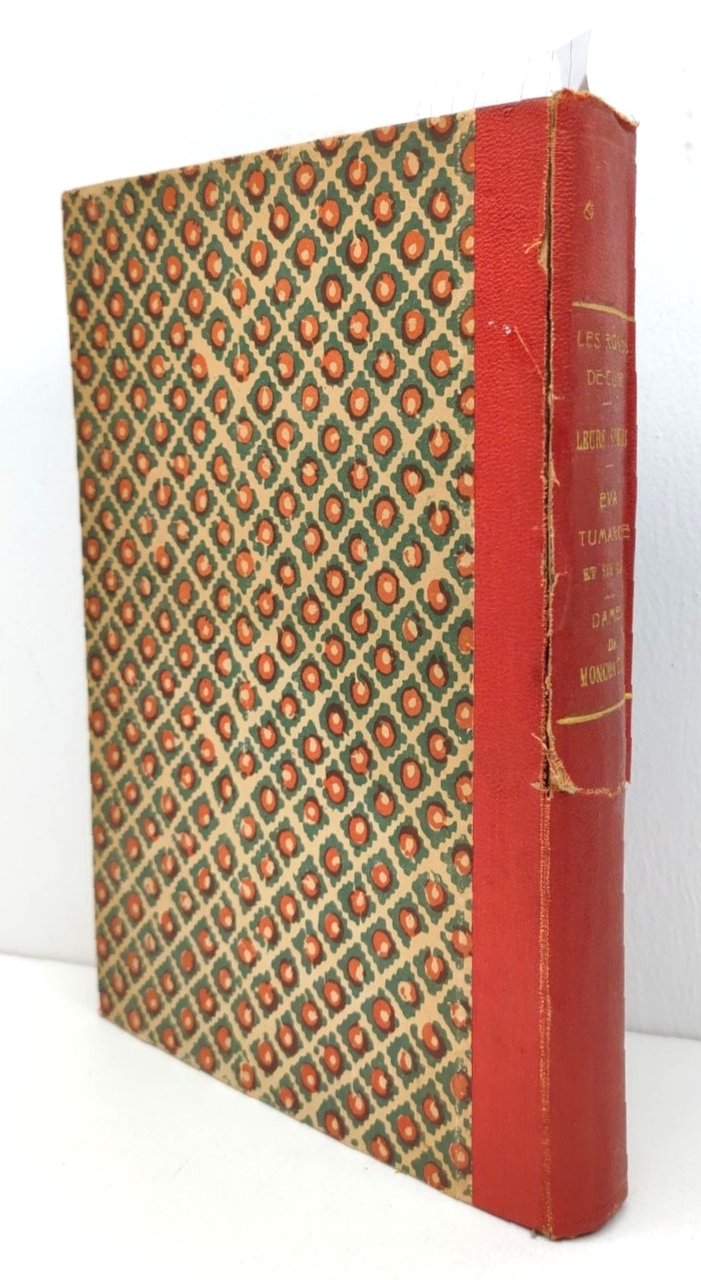 Legatura rigida in mezza tela con piatti cartonati e dorso in tela rossa, legatura in pessime condizioni con rotture tra piatti e dorso, dorso con una rottura restaurata, segni del tempo, tagli bruniti ed impolverati, pagine interne leggermente brunite maggiormente al margine esterno, in francese, testo su due colonne, all'interno tre racconti con illustrazioni nel testo, numero pagine 120 + 125 + 126 dimensioni cm 23,5 x 17,4 Pagine ossidate su carta fragile