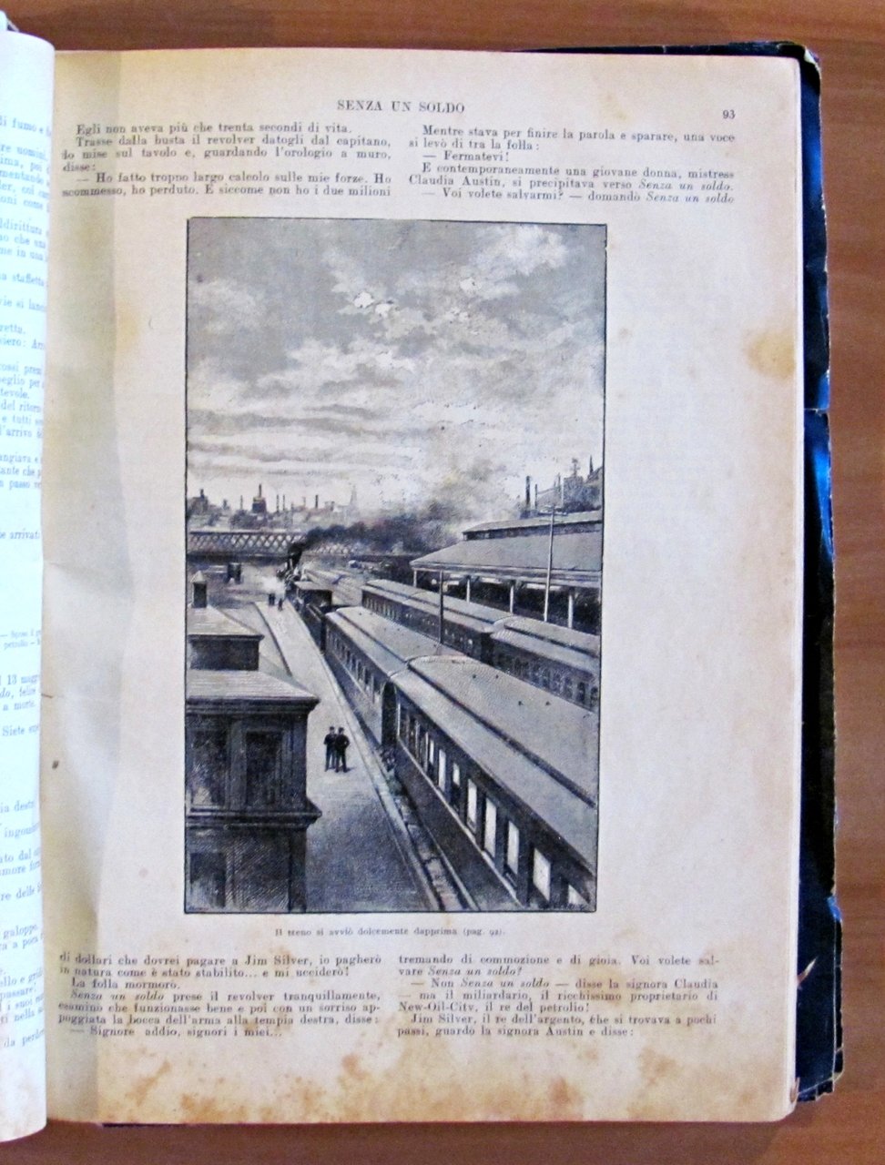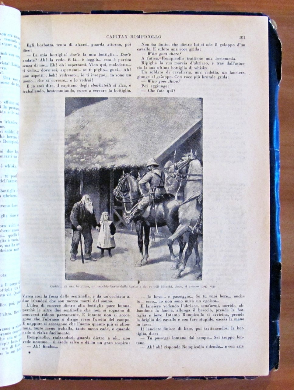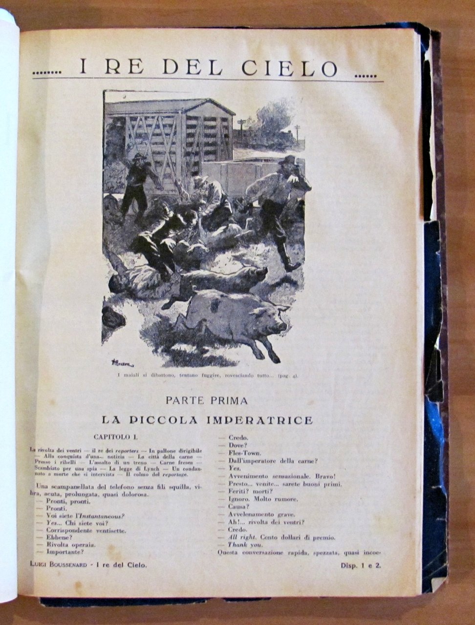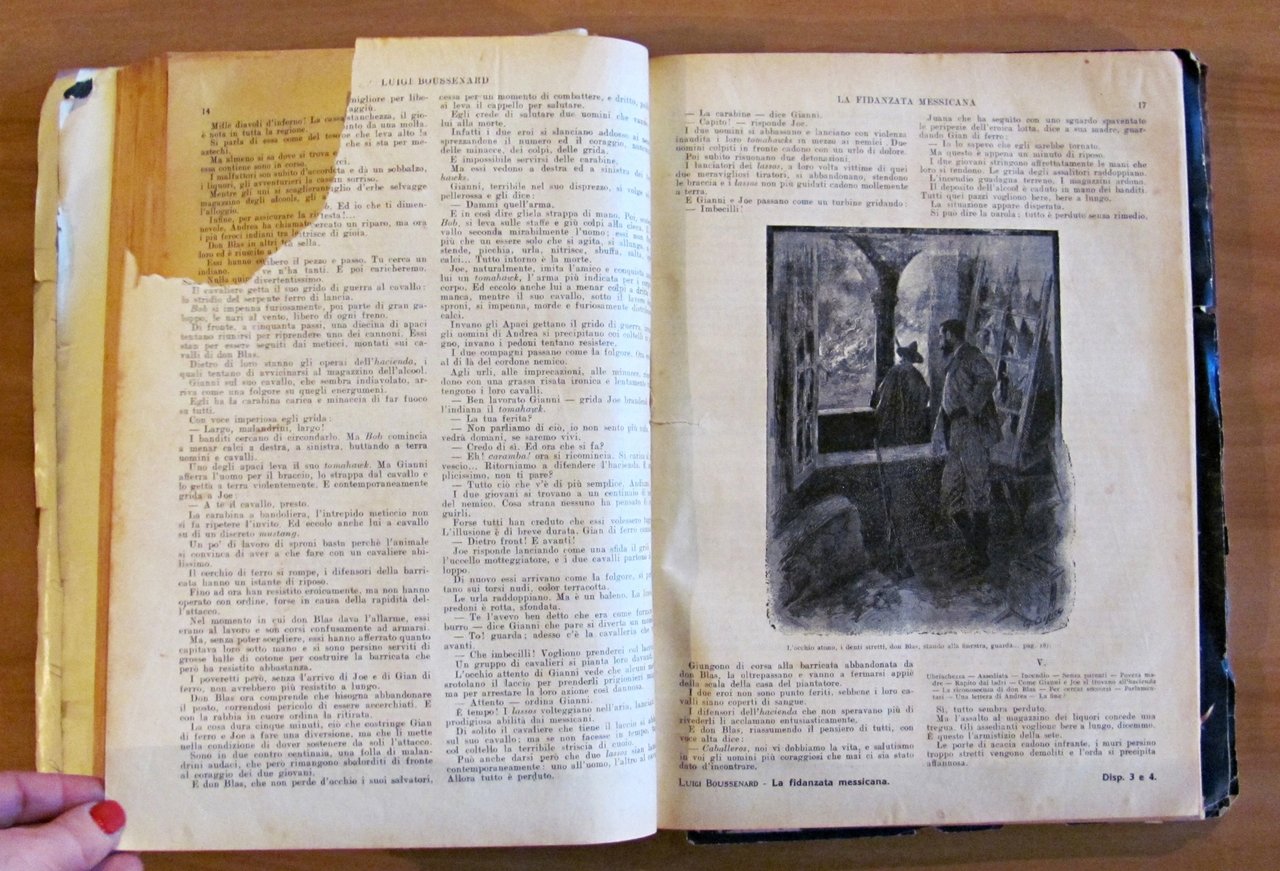 Raccolta di 8 racconti. Il Capitano Satana (L. Jacolliot); Capitan Rompicollo; Senza un soldo; Il Robinson gobbo; La fidanzata messicana; Il re del cielo; L'eroe della Macedonia; Lo zuavo di Malacoff. Illustrazioni in b/n n.t. a tutti i racconti di Clerice, Della Chiesa ed altri. Editore Sonzogno - Milano, 1923. Rilegatura coeva muta contenente gli 8 racconti rilegati, il primo con copertina in brossura originale rilegata all'interno e 4 ulteriori copertine originali conservate, non rilegate; di cui una (quella di Capitan Rompicollo) è restaurata e con scritte al retro. Qualche micro taglietto ai margini esterni, lievi fioriture del tempo e mancanze, in rari casi più accennate, e minime imperfezioni alla cerniera interna di pochissime pagine. Segni a matita colorata ai risguardi finali. 23x30,5; pp.181, 108; 94; 94; 104; 103; 96; 105. RARO e in BUONO STATO , Buono (Good)