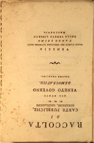 Raccolta di carte pubbliche, istruzioni, legislazioni ec. ec. ec. del nuovo veneto governo democratico. Volume primo -duodecimo