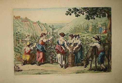 4to oblungo (cm. 26,6), 50 tavv. in splendida coloritura coeva all’acquarello. Legatura coeva in mz. pelle con angoli, nervi e fregi oro al ds. Cerniera anteriore lenta e tracce di usura soprattutto agli angoli. Rara prima edizione.