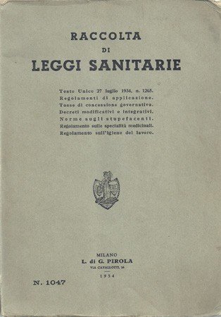 Raccolta di leggi sanitarie. Testo Unico 27 luglio 1934, n. 1265. Regolamenti di applicazione. Tasse di concessione governativa. Decreti modificativi e integrativi. Norme sugli stupefacenti. Regolamento sulle specialità medicinali. Regolamento sull'igiene del lavoro