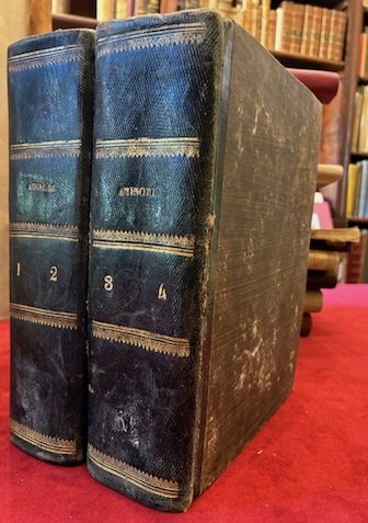 4to (cm. 23), 4 Tomi rilegati in due voll.; XII-414 pp. Con 15 tavv. f.t. (di cui due ripiegate); 1 c.nn., 318 pp.; 1 c.nn., 490 pp.; 1 c.nn., 461(1) pp. Capilettera e fregi xilografici n.t. Legature inizi ‘800 in mz. pelle verde con fili e titoli impressi in oro al ds. Tagli gialli. Timbro araldico della Biblioteca del marchese Annibale Berlingieri sull’occhietto del primo Tomo e sulla carta bianca iniziale del secondo vol. Lievi sporadiche arrossature, peraltro esemplare in ottimo stato di conservazione. Rara edizione originale. Provenienza: Collezione Spina, Avezzano. Cfr. Minieri Riccio, n. 112; Bindi, p. 18; Zuccarini, n. 172. Non in Pansa.