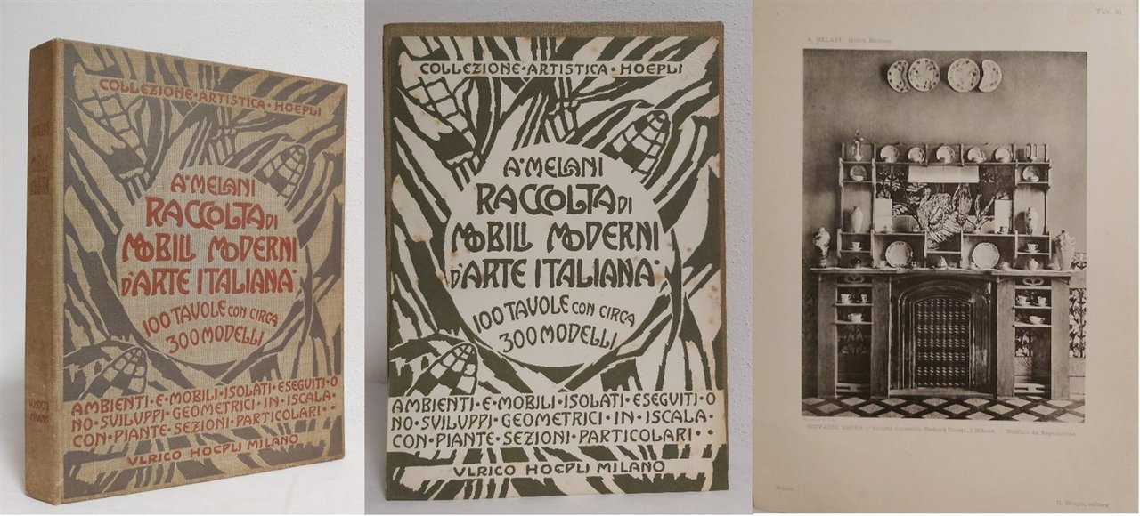 in-4, (4), 100, leg. cartella editoriale tela con impressioni e tit. in rosso. Raccolta di 100 tavole sciolte raffiguranti arredi, mobili e suppellettili di artisti italiani: Eugenio Quarti, Giacomo Cometti, Alfredo Melani, Giovanni Celestino, Angelo Sello, Annibale Rigotti, Ernesto Basile, Carlo Bugatti, Gavino Clemente, Giovanni Sichirollo, Tommaso Bernasconi, Giovanni Buffa, Carlo cattaneo, Giulio Arata, Adolfo Rubbinai, Alberto Issel, Cesare Piazzesi, Mario Cassina e altri. Rara ediz. orig, completa di tutte le tavole. Collana Collezione Artistica Hoepli. Segni d'uso ma ottimo esempl. [441]