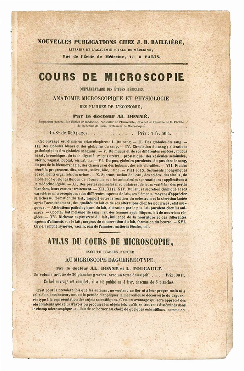 - Cours de microscopie ciomplémentaiire des études médicales. Anatomie microscopique et physiologie des fluides de l'économie. Par le docteur Al. Donné.
